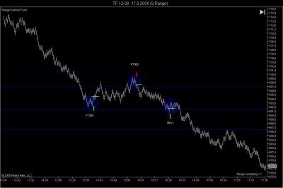 Takže obchody z 17.9.2008 - TFZ8 - live Jen na vysvětlenou, s novým kontraktním měsícem jsem změnil podstatně styl obchodování. Konkrétně výběr obchodů a vstupy. Základ tvoří RB2 - hledám formace a na RB0.9 určuji místo pro vstup. Pevná pravidla jak mají vypadat DT,DB,RR ... jsem úplně vypustil a řídím se čistě pocity a konkrétní situací. Richard