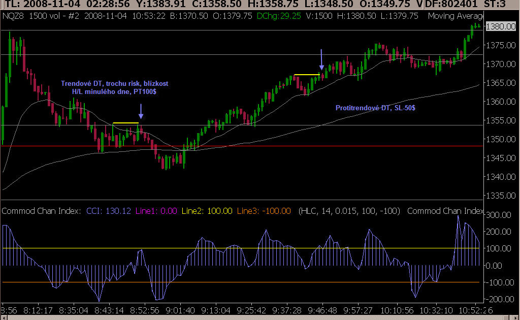 2. Tady to je pro mne taky jasna chyba. Ja tam vidim maly pattern HaS do uptrendu. Nejdrive 2bR s div na CCI a potom 1-2-3. Skoda, ze jsi nesel do toho dalsiho DT.