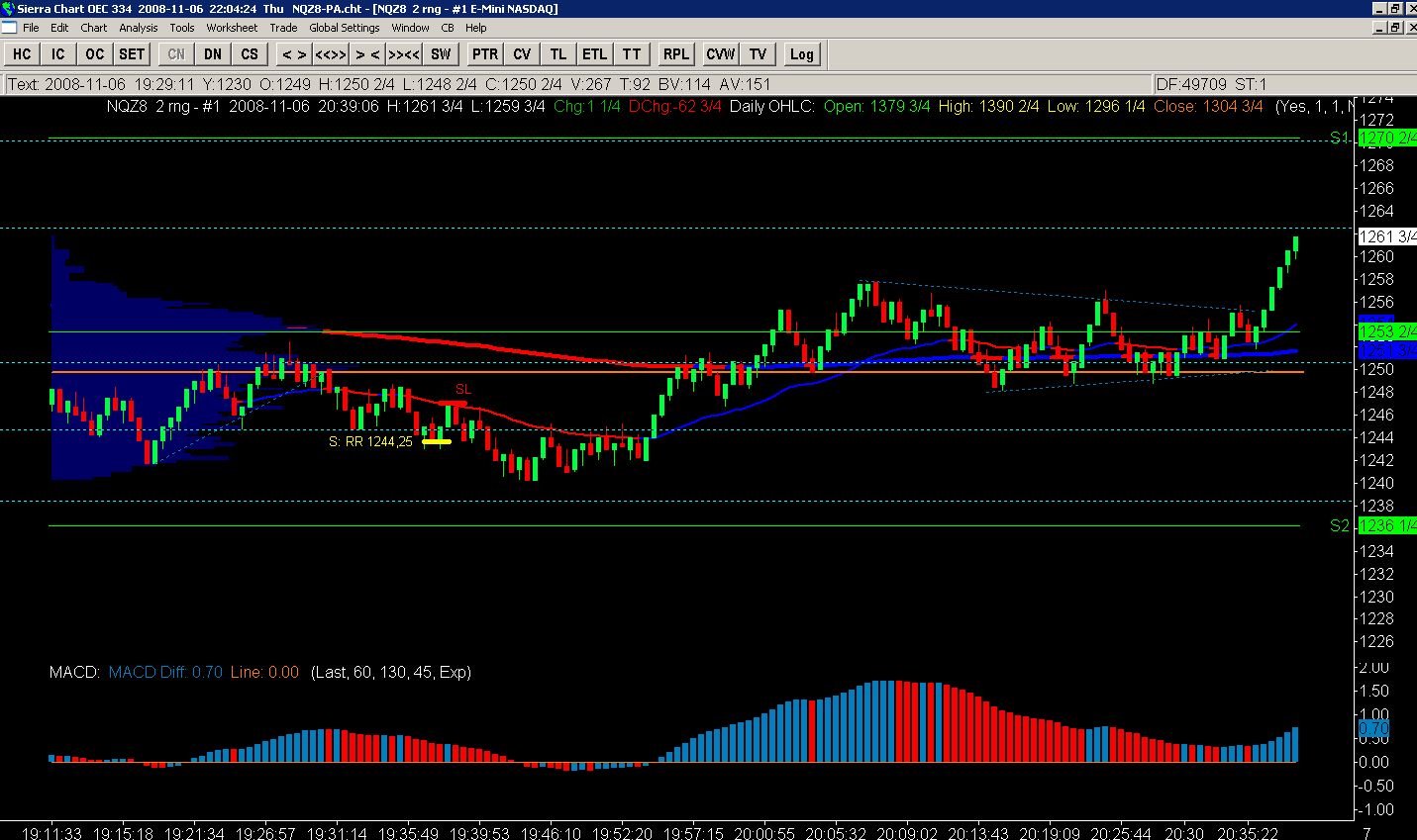 Zdravim, dnes také přispěji svými obchody. Opět jedu sim, tak možné, že vkládání obchodů sem, mi konečně donutí držet nějak systematicky plán a hlavně nepřeobchodovávat :( NQ, RB2+RB6. Dnes 3 obchody, všechny prakticky totožné, RR do shortu, vše podle plánu, přesto výsledek 2xSL, 1xPT. ať se daří, Míra