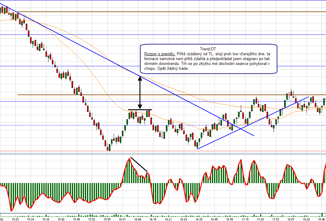 Dneska jsem tomu dal na prdel, protože jsem idiot a nedovedl jsem si zorganizovat lépe čas, tak jsem zasedl k PC až po poledni tudíž mi uteklo hezké trendové DT, za čas se objevilo další, to jsem vzal, bohužel mě to vyprášilo na BE přesně na tick. Nakonec +15€. Stejně jako Airmike opouštím futures na nějaký čas. O jedu FESX a FGBL. PS: na poradentství kašlu, není na to čas :)