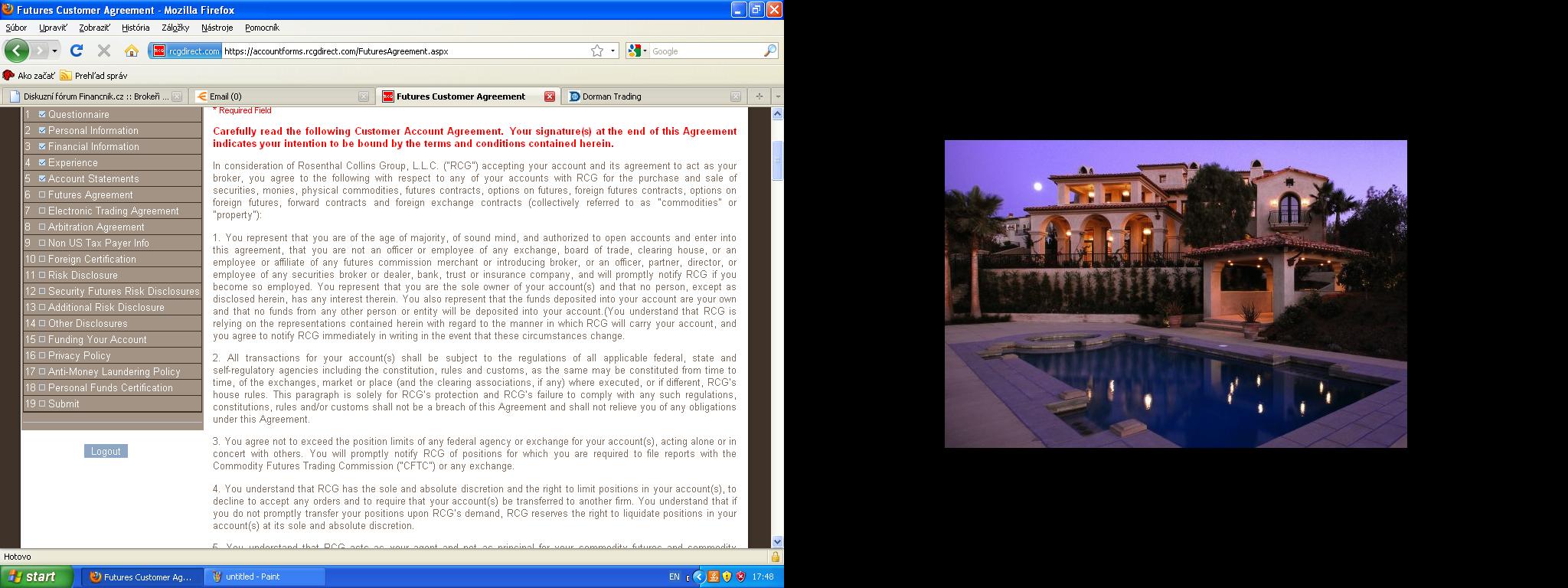 Ta sekcia je o tvojej sposobilosti, ze mas zdravu hlavu a vek, ze tradujes iba svoje peniaze a nie peniaze banky/inych ludi. Takze ano s tymto som suhlasil a myslim v kolonke personal info, alebo financial/experience info som napisal ze som zamestnancom banky, takze ak tam dole bolo Agree/Disagree tak urcite som suhlasil ;)