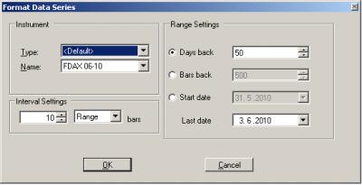 Prescott Tipuju, ze mas spatne nastaveno jaka data chces zobrazit, viz. obrazek "format data series" Prekontroluj "Days back" & "Last date" vs "Start date" & "Last date" Napr. pro kontrakt 03-10 je 50 posl. dnu od 2.6.2010 opravdu prazdny graf :-)