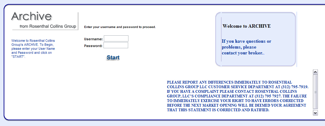 Go to www.mirusfutures.com then click Account Login, then click RCG Archive Login