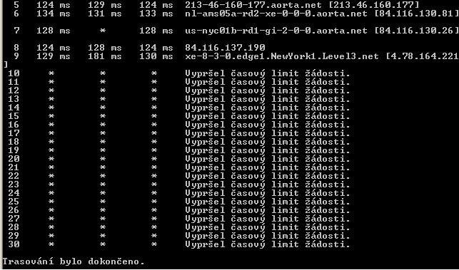 Tak jsem to dneska řešil s UPC a v jejich síti by neměl být problém. Dopracovali jsme se k tomu, že pokud si natrasuji v příkazovém řádku www.yorkba.com tak jim se tato stránka otevře a mě né. Podle příkazového řádku mé spojení končí (blokuje se - nejde dál) až na serveru v NewYorku nějaký xe--8-3-0.edge1.NewYork1.Leve13.net ip adresa 4.78.164.221 a pak už to nejde dál.... Vůbec netuším jak toto mám řešit Co se týká UPC tak oni nemůžou ovlivnit trasování MIMO jejich síť, tak že oni s tím nic neudělají. Poradíte prosím někdo ? Přikládám screen z příkazového řádku