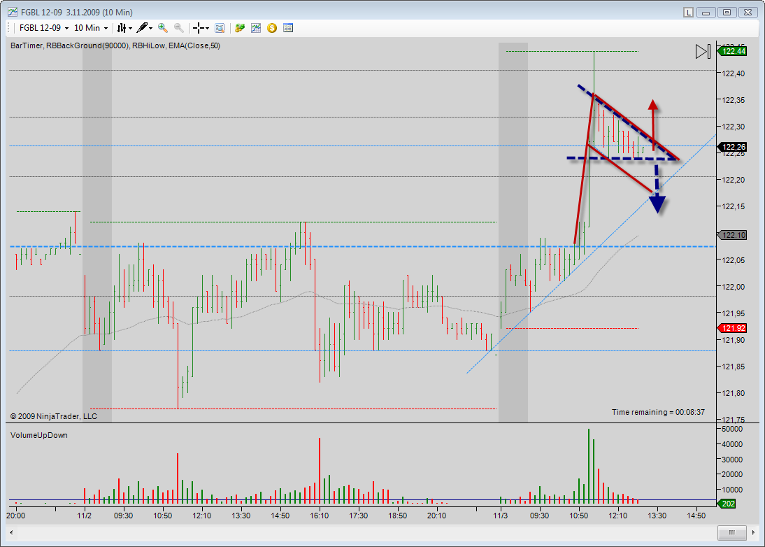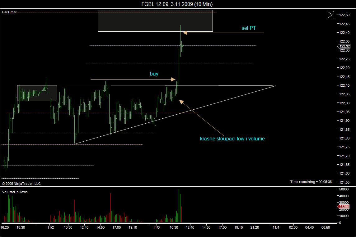 To Gladiator, Lucinek: Vratim se jeste k nasemu vcerejsimu tematu. Dnesni FGBL nabidnul presne situaci o ktere jsem vcera mluvil. Jak v realu vyhodnotit tuto situaci: - Pokud beru trojuhelnik (modre) s SR urovni tak bych mel ocekavat prorazeni do shortu - Pokud beru trojuhelnik (modre) a pravidlo kde vstupuje cena, tak je to longovy trojuhelnik a cekam prorazeni do longu - A nebo to muze byt i vlajka a pak ocekavam prorazeni do longu Pri live se v takovych situacich radeji drzim stranou, ale zajimalo by me jak na to nahlizite vy? Dekuji. R.