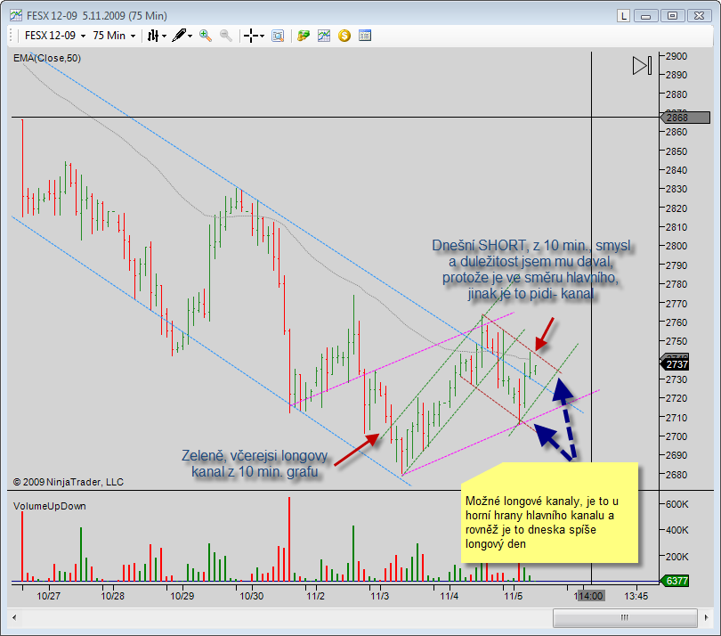 Kdybych si vice veril tak jsem mohl jit pro profit az k horni hrane kanalu...a naskocit s malym SL do SHORTu, ale jsou obedy tak si nebudem kazit chut :-) Gladiator, prosim o komentar jestli je to podobna logika z jakou kreslis kanaly ty a nebo mi jeste neco unika. Diky. R.