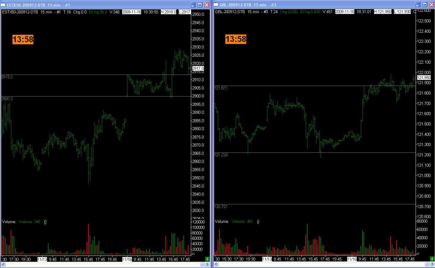 krakra nevím jestli je v německu nějaký svátek,ale rozhodně se připojuji k názoru,že dnešek byl velice nestandardní...svíčky jsou nezvykle dlouhé a spodní hranice CG dnešního Fesx je pozoruhodná..:) obchod ve screenu jsem udělal z nudy,protože bych pro profit pod 100 bych v reálu nevstupoval,ale nakonec jsem vystoupil na +40eur..vůbec jsem se neuměl zorientovat,pořád to na mě působilo jako časovaná bomba,tak jsem to zabalil a pak už jenom sledoval z povzdálí raději.. Tomas