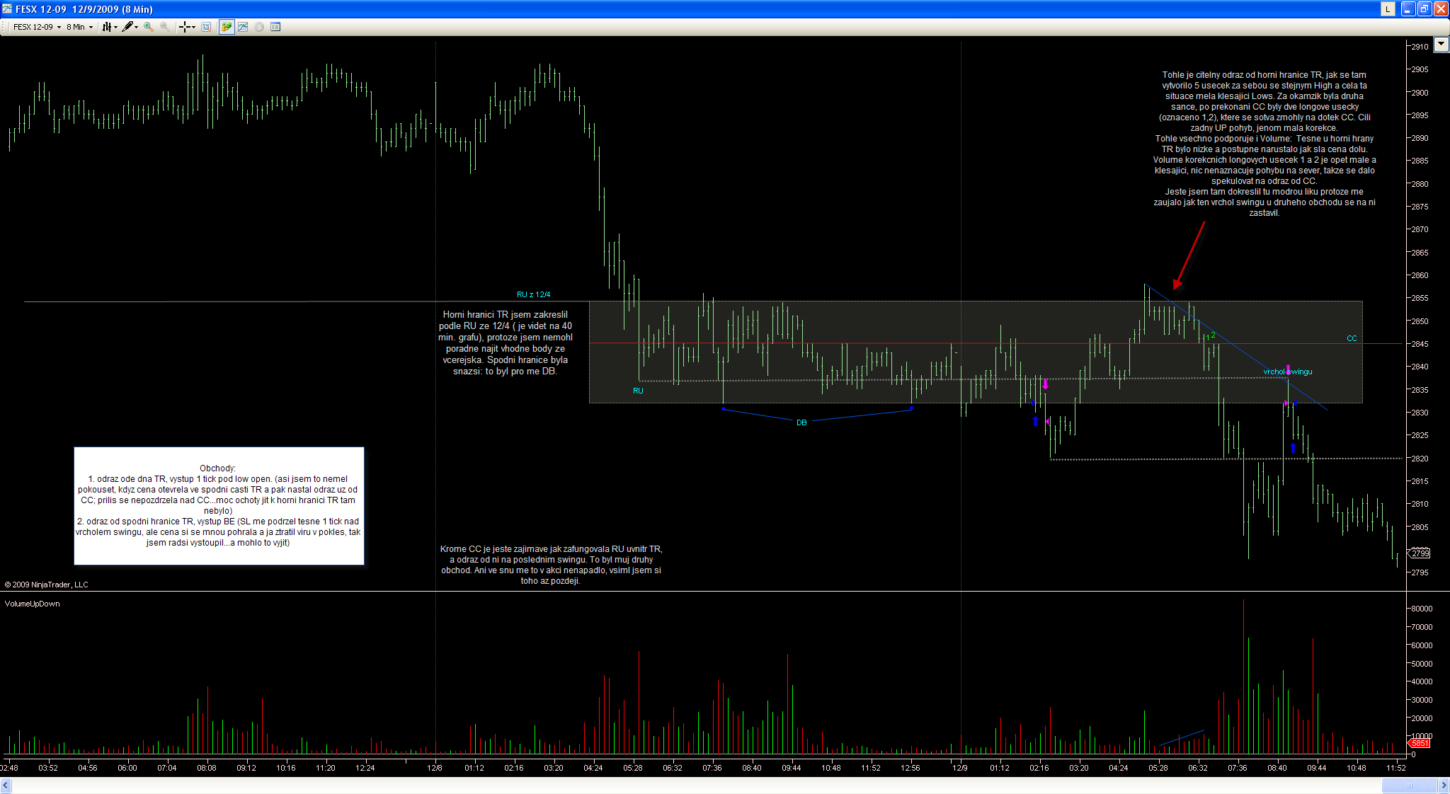 Čaute, dneska dva obchody založené na breaku CG resp. ST s výrazně rostoucím Volume...první Loss,druhý Win..popis ve screenu...je tam ještě jeden označený možný vstup do shortu,což by mě zajímalo jestli by to třeba Gladiator a někdo z ostatních bral jako platný signál ten break TL a potom včerejšího CC... Tomas