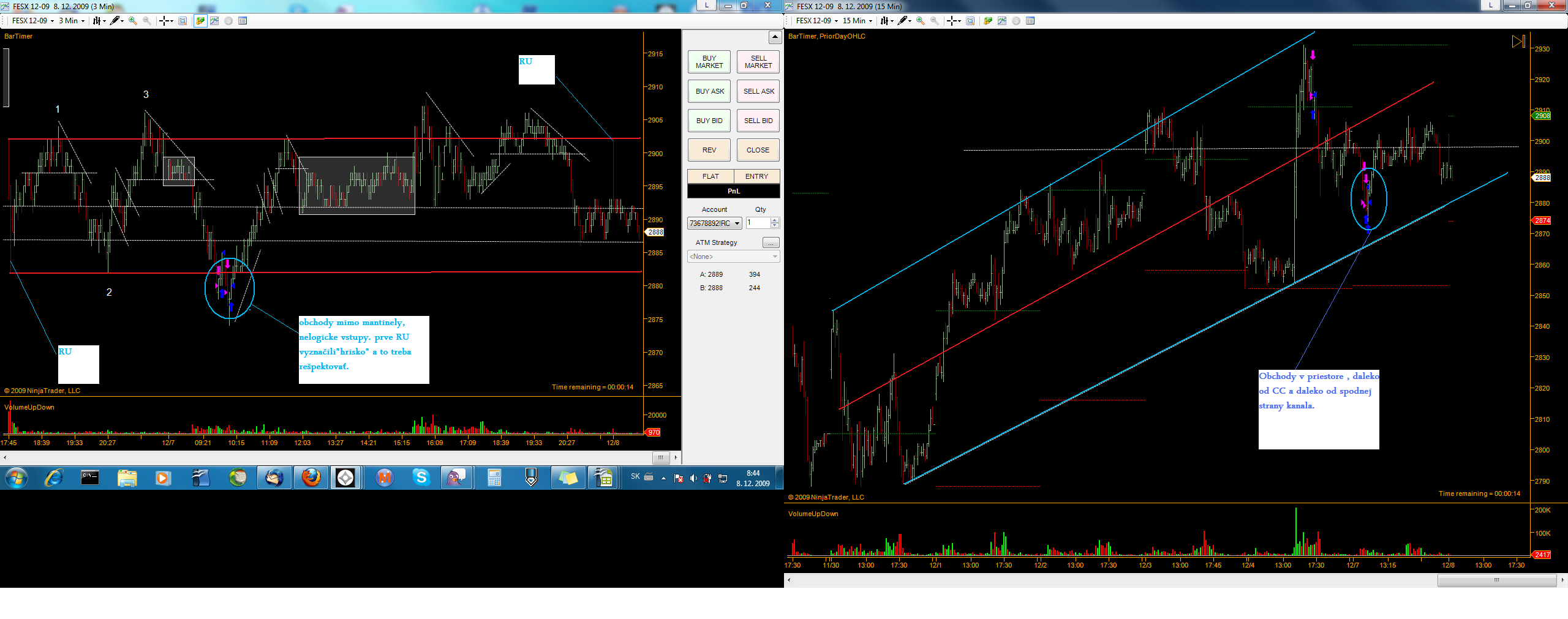 Ahoj PalY, vitaj v eurex rodine a samozrejme aj ostatní noví bojovníci... :) nechcem Ti do toho velmi kecať, ale ked si čerstvo začínajúci nepovažujem multikontrakt za najlepší nápad, system si musíš ešte "skrotiť" a vychytať muchy no pri multikontraktoch sa toho možno nedočkáš a skončíš skôr ako na to prídeš, zázraky sa niekedy dejú , ale na to by som sa velmi nespoliehal. Medzi signály si si zaznačil v podstate dobre no ušli ti mantinely hry a obchody si riešil mimo"hrisko" , vždy si najprv definuj mantinely a až potom medzisignály , pozri screeny . Obchodovat akýkolvek trh pre 50-100 Eur je skalping a táto hra je pre začiatočníka vysoko smrtelná.. stačí si položiť otázku aký SL používaš? Ked je to 50 Eur a ideš pre 50 Eur .....,alebo hoci pre 100.....no neviem. Zastavam teoriu , že je potrebné naučiť sa konzistentne zarábať 100 Eur denne a si v podstate za vodou , lebo zbytok je len násobenie kontraktov , no netreba to brat doslovne , teda neutekat za 100-kou so SL 100 nebodaj väčším., dá sa obchodovať aj s 30 Eur SL no to už fakt musíš do toho trochu vidieť no a ked do toho už trochu vidíš tak určite nebudeš brať 100ku. Pre FESX je optimálny zisk 200-250 Eur na obchod no to je individuálne . Slabý verí v šťastie, silný v príčinu. Gladiator028