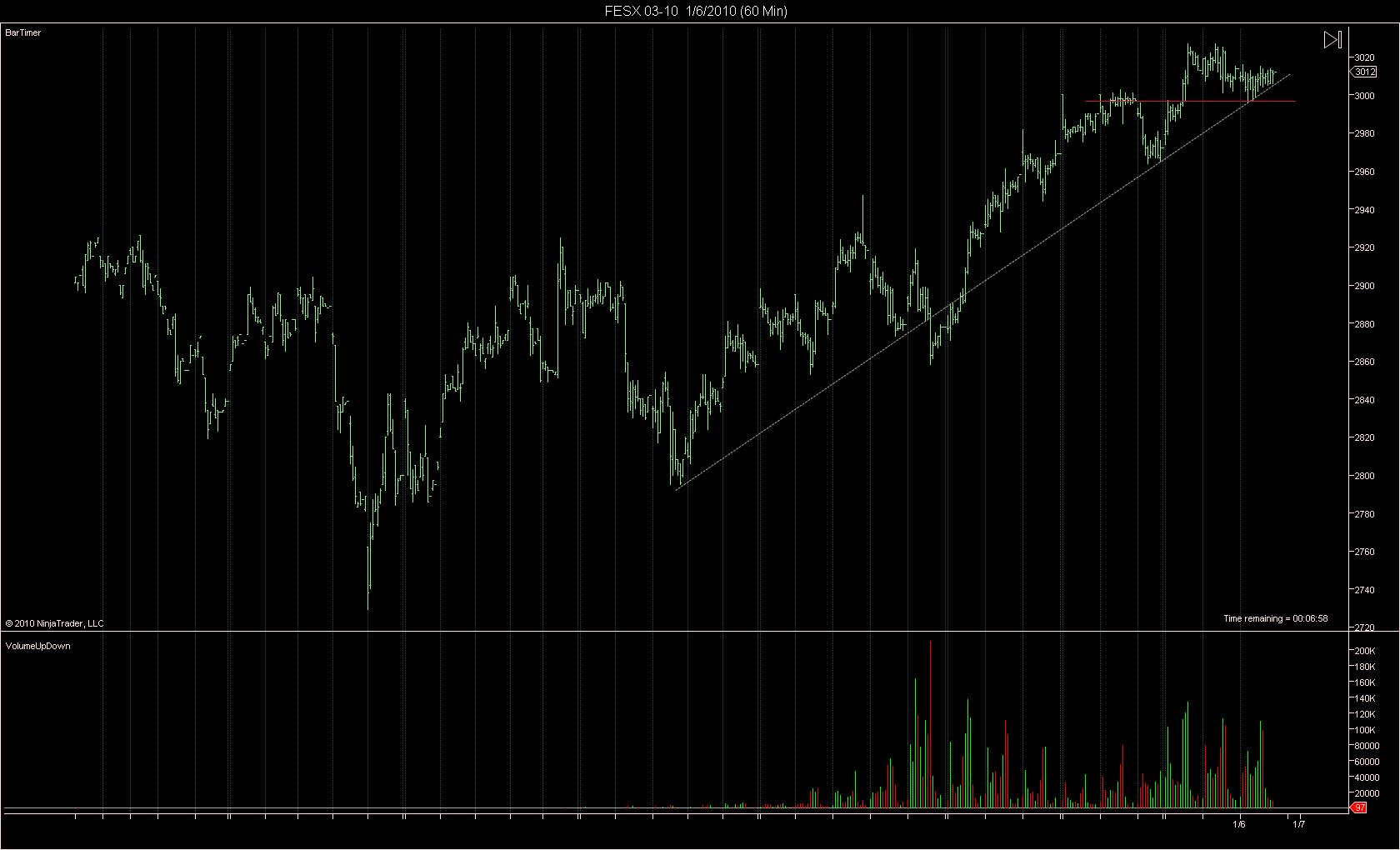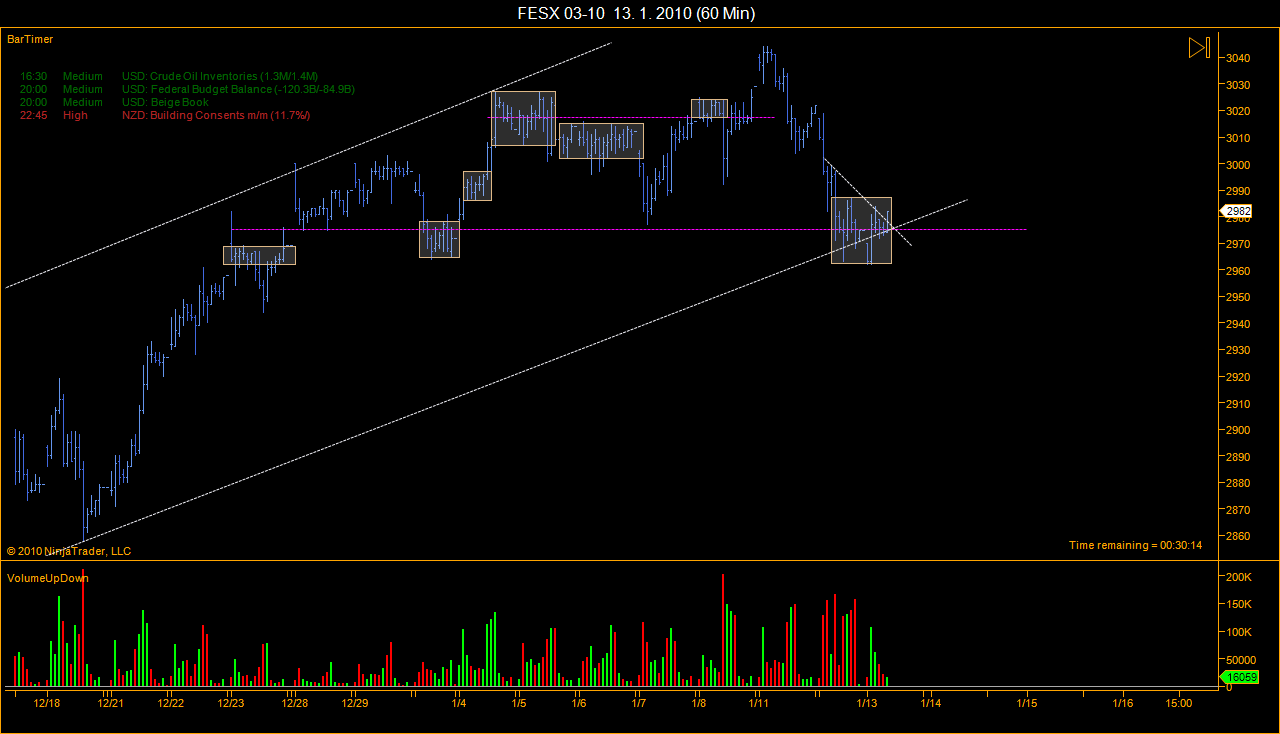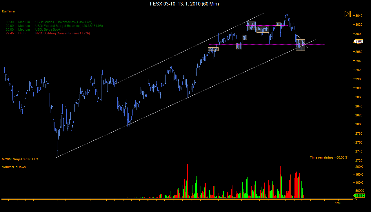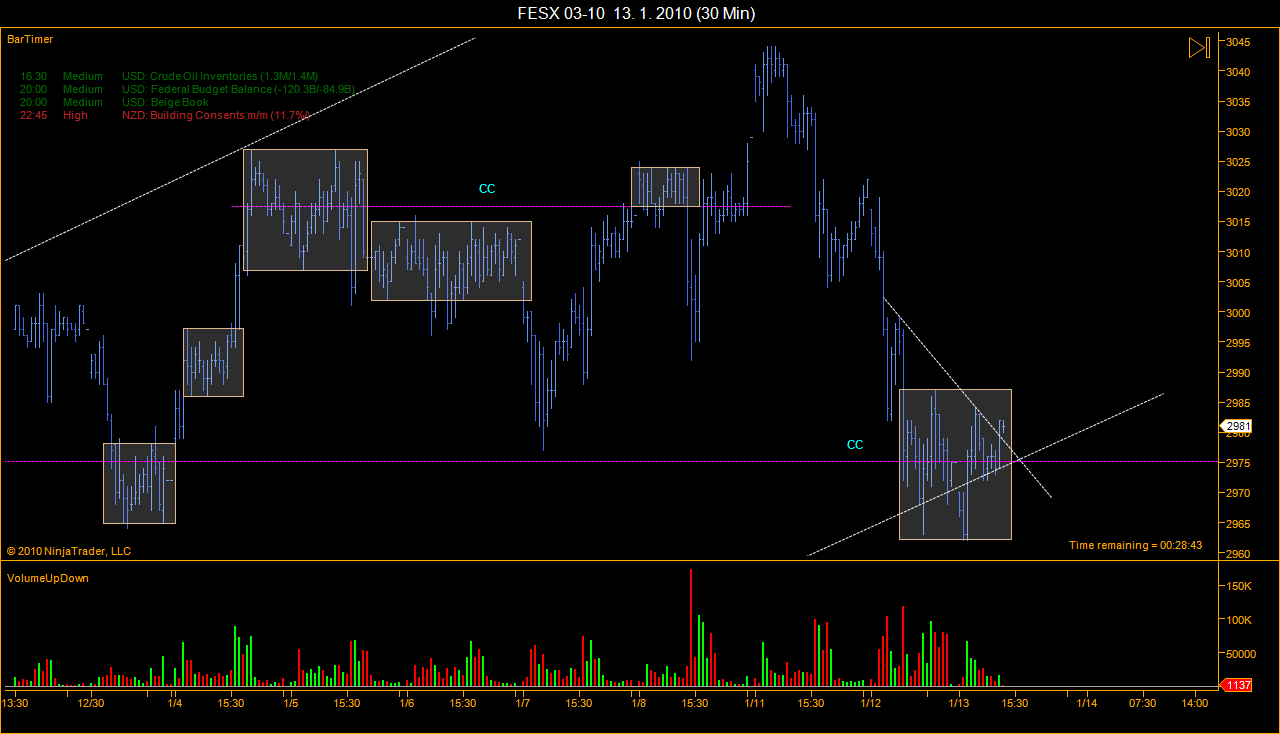 Ahojte, na FESX: medzi 2997 a 3027 sa odohravalo par bitiek, ktore asi naznacuju ze trh je nespokojny s cenou, tak sa par vodopadmi vratila a pohybuje sa okolo 2975, kde som zakreslil CC, ktore je blizko nedalekeho ledge na 60 min grafe. Po vcerajsom zastaveni ceny trh pokracuje vo vytvarani TR, ktore sa mi zda dolezite, lebo je na kraji kanala, tam by sa mohlo rozhodnut o smere trendu. Co vy na to?