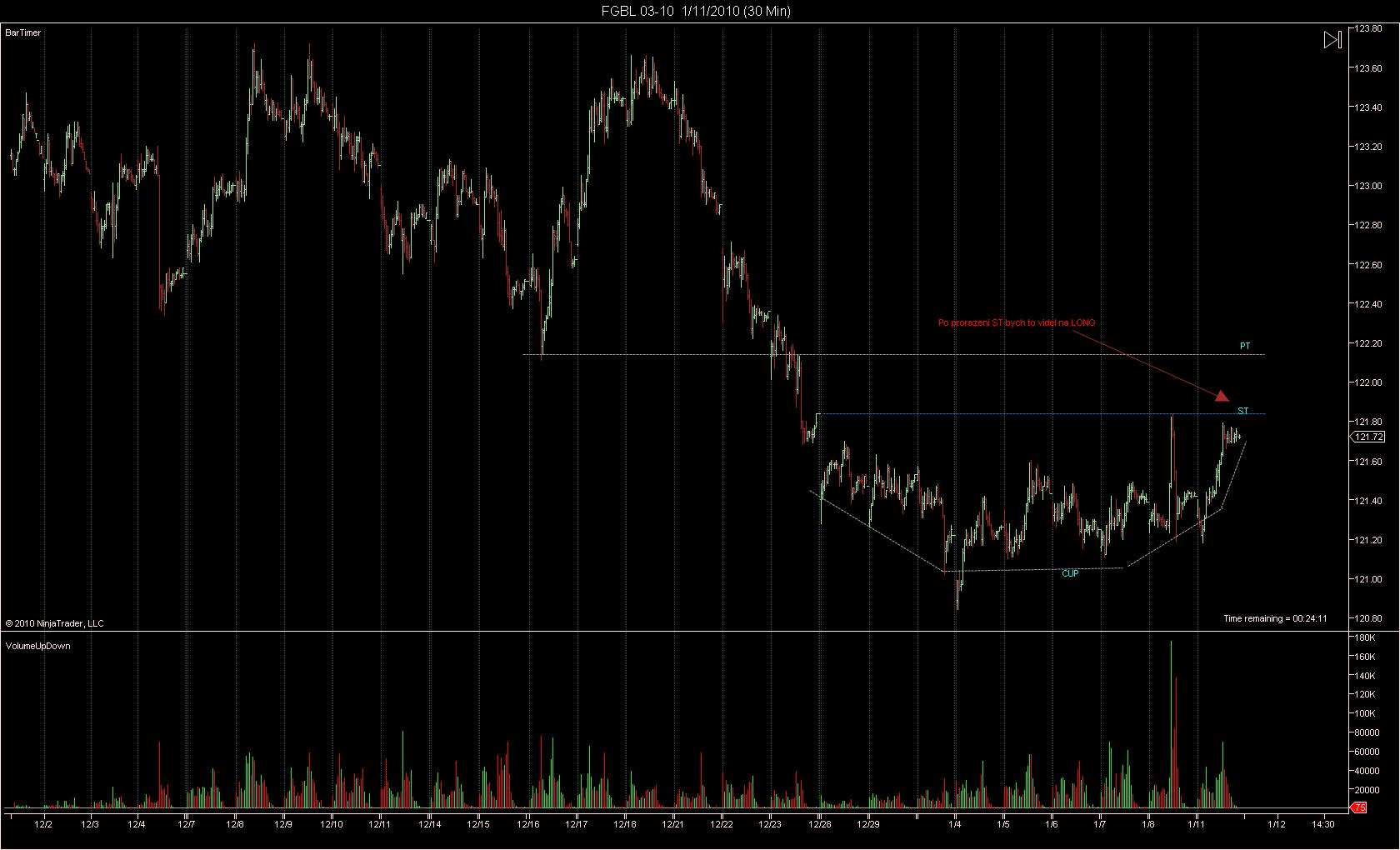 Tak nevim co si mam o dnesku myslet. Nejprve jsem zkusil zobchodovat druhy pruraz te ST, ale mel jsem vystoupit drive na BE pote co se utvorily dve doji a byly tam taky klesajici highs. Tak nejak jsem ale veril te ST linii a chtel jsem vedet jestli vydrzi....nevydrzela, takze SL-50. Po otevreni US trhu to bylo dost volatilni a porad se to mlelo kolem te ST urovne az nakonec pekny pohyb jedine usecky, tam kde jsem mel puvodni PT. Toho 123 do trendu jsem si vsiml az pozde ale stejne nemyslim ze bych to zobchodoval, bylo to v tu chvili dost volatilni a tak me prekvapilo ze najednou to dostalo nejaky smer. Co si o dnesku myslite?