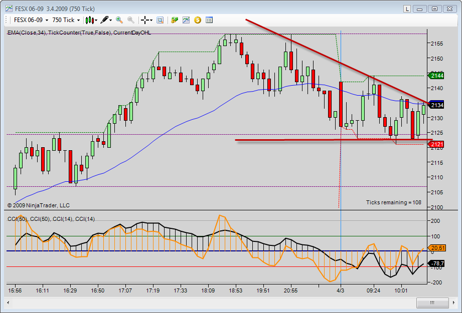 Jedu teď FESX a v 9:54 jsem po divergenci nakoupil do longu.