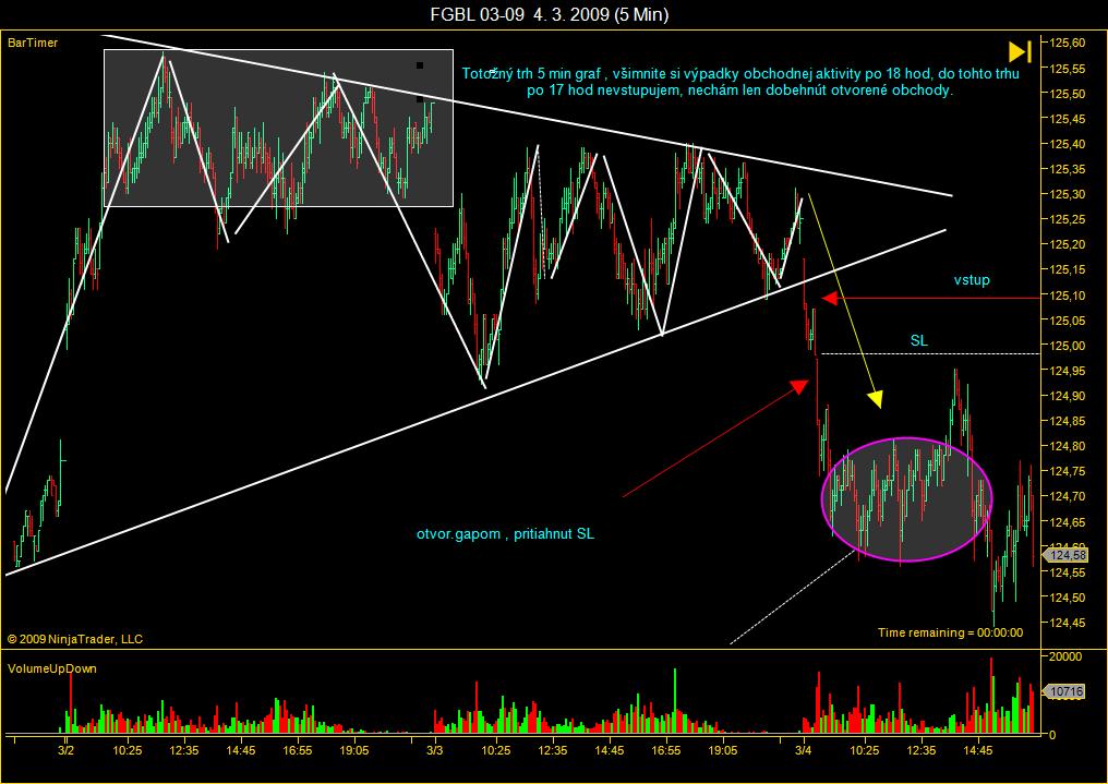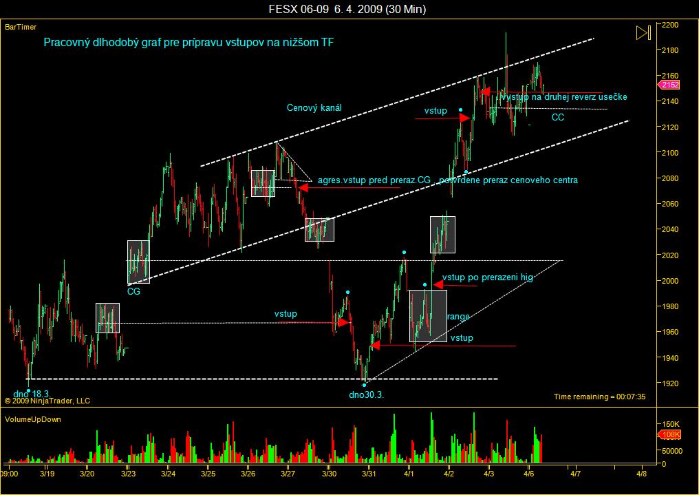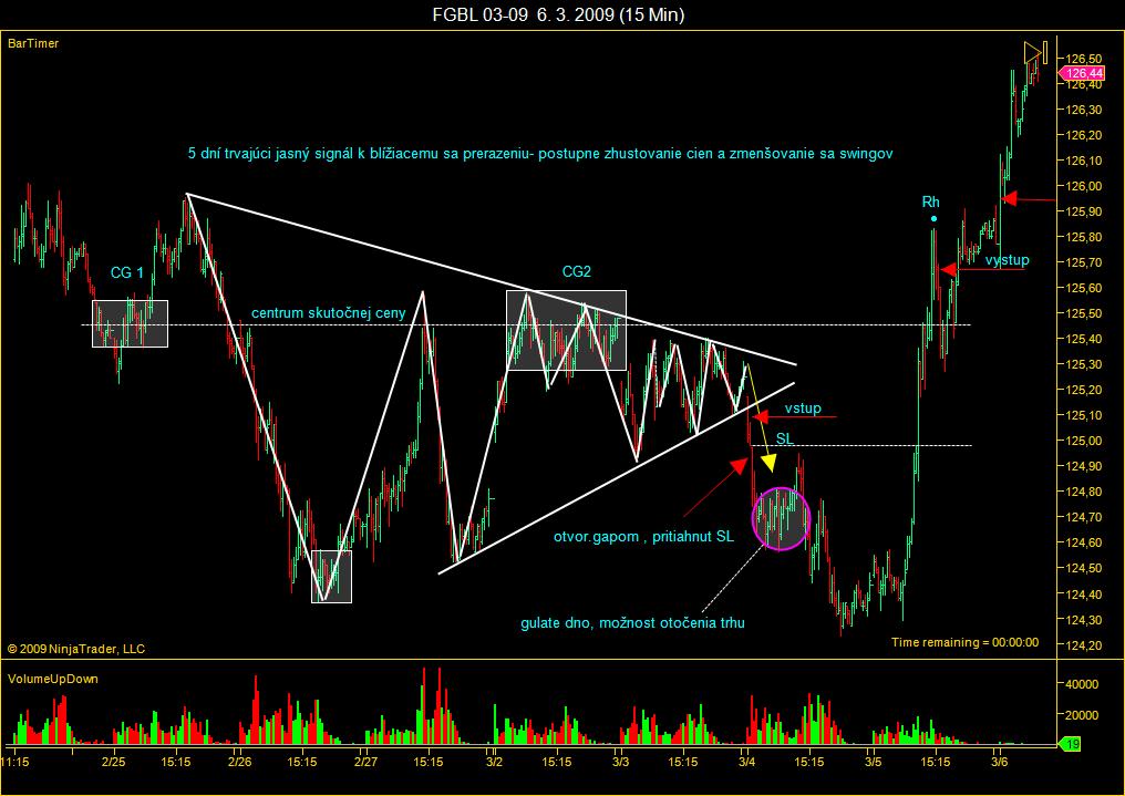 Ahojte, pridávam dalšie screeny pre trh FGBL s mojím pohladom na tento trh so systemom PA. Tento trh sa hýbe opačne ako FESX a tak sa vzájomne môžu používať ako filtre. Neberte to však doslovne...neznamená to že ak sa práve vykresluje rastuca úsečka na FESX tak bude klesajúca na FGBL !!! je tam odstup cca 3 úsečiek, ale ide hlavne o smerový pohyb.Teda ak FESX rastie FGBL bude klesať.Pri netrendujúcom trhu môžu ísť podobne , ale takýto trh nás nezaujíma.Volume na tomto trhu je nižšie aso na FESX ale aj volume 5000-25000 je úplne v pohode. Tento trh končí obchodnú aktivitu po 18:00 takže už nemá význam hnať sa za dobre vyzerajúcim signálom lebo môže byť posledný. Výnimku tvorí očakávnie dôležitých správ ked ma tento trh prekvapil a " žil " až d 21:00 nakolko sa kolegom obchodníkom nechcelo spať.. :) Good Luck Gladiator028