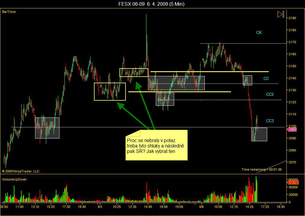To Lapaz, je to jednoduché, teba stále musí zaujímať najbližší cenový zhluk a o to viac pokial je aj väčší ako ten starší ktory si označil žltým rámikom. Teoreticky aj ten by sa dal obchodovať, ale išiel by si proti velkemu-silnemu zhluku v predu a to nestoji za riziko. V prípade CC3 v blizkosti nič nebolo a tak berieš do pozornosti cenový zhluk ktorý je najbližší a to hoci niekolko dní dozadu a ako vidíš aj tu to správne zafungovalo a vytvoril sa cenový zhluk. Tak isto v prípade prerazenia Hig/Low zaujíma ta najbližšie z predchádzajúceho dňa , alebo priamo z dna v ktorom obchoduješ. Do najbližšieho Shortu idem až po možnom prekonaní zakreslenej trendovej linky, ale pre menší profit môžeš vstúpit aj po prerazení CG ktoré sa tam práve tvorí. Gladiator028