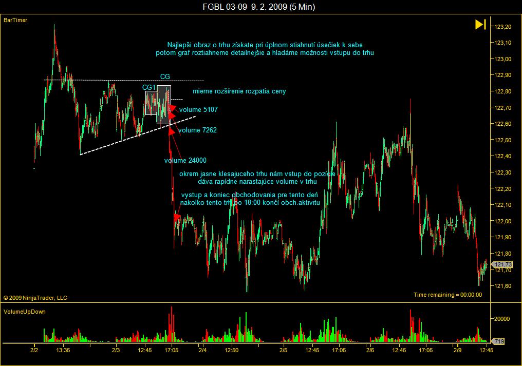 To mahrlo, najlepší čas je väčšinou od 9:00 do 11:30, potom 14:00 - 18:00. Dnes sa robí práve to o čom som písal vyššie, trh má sýtce stúpajuci objem obchodov , teda je likvidný, ale nemá žiadnu rýchlost ... nemá smerové presvedčenie a hýbe sa stále okolo jednej ceny, potrbuje spuštací impulz , ale nakolko dnes neočakavame žiadne dôležite správy impulzom môže byt nakopený počet čakajúcich príkazov nad CK , alebo pod CC teda počkám na prerazenie CK alebo CC a potom začnem hladat vstupný signál. Prikladám screeny. Good Luck Gladiator028