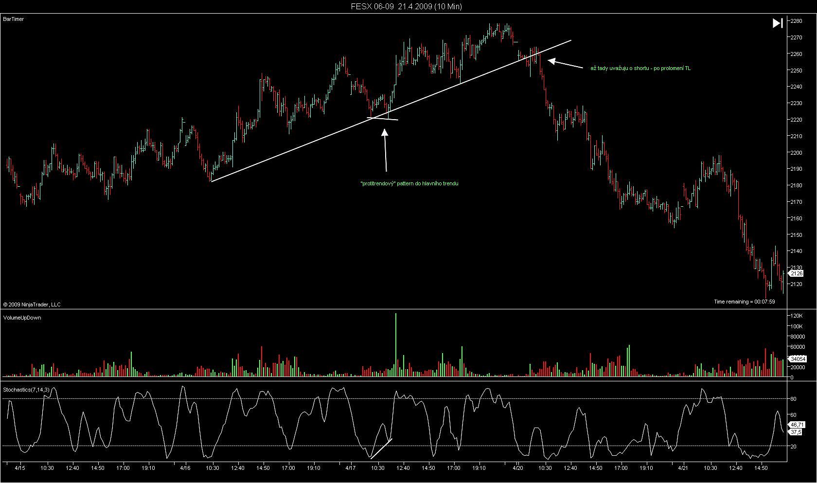 To hiker: Když se tak dívám na tvůj graf tak bych tam pár "protitrendových" situací do hlavního trendu našel - po boji pochopitelně :-). Ale v podstatě se to takto snažím dělat ve svém systému: počkám na prolomení TL v korekci hlavního trendu (korekci beru jako malý trend). Pokud je tam nějaká divergence tak bych počkal na malou korekci po proražení té TL a na ní vstoupil. Ale to je jenom obecný a hrubý nástin logiky věci jak se snažím to dělat já. Snad ti to pomůže