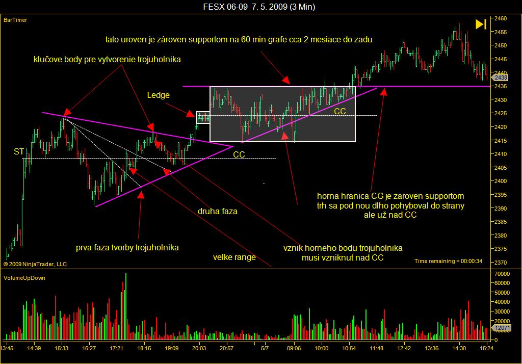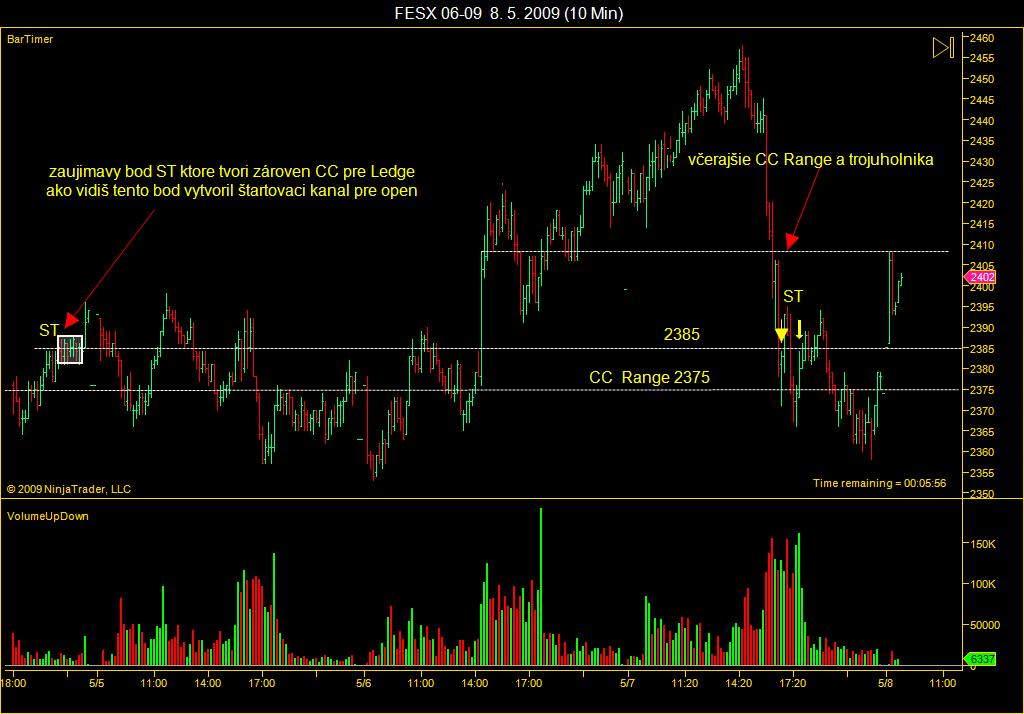 Ahoj Lapaz, máš to 100% správne som rád ž si to pochopil.. (tu) Prikladam screen s jednou čiarou naviac na 2385 nakolko tam vzniklo ST a Ledge súčasne ktoré je zároven CC Ledge, dnes sa od toho trh odrazil a vznikla tak spodna časť kanála. Na tvojom screene to nieje vidiet , lebo máme rozličných poskytovatelov dát a tak sa úsečky vykresluju odlišne , vrámci svojo grafu si to spracoval OK. Gladiator028