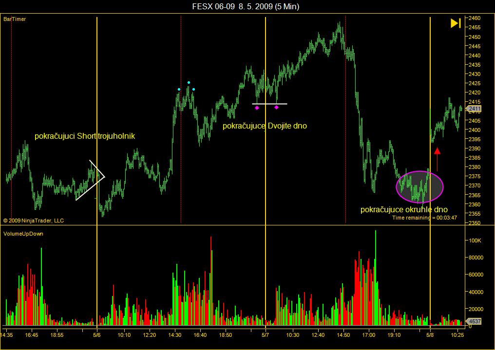 Ahojte, Mahrlo a Lapaz, teraz nechcem byť škodoradostný ja a fakt ma mrzí že Vám to nevyšlo.... akurát som sa chcel spýtať ako sa Vám páči dnešne FESX ked to sype...samospádom a tu zrazu čítam o natlučených hubách a strelných zbraniach... :) Skutočne velmi by ma zaujímalo kde a kedy ste do toho liezli ? Neviem si predstavit liezť dnes do Longu...nič vo zlom. Screen som upravil tak aby ste videli oddelene jednotlive dni žltou čiarou a zároveň som tam naznačil aj"polčas" tiež poskytuje indície "premarketu" pred otvorením amerických burz. Skrátka pohyb ktorý končí jeden deň zákonite pokračuje na druhý deň, musíte si poskladat obraz celeho trhu nielen dnešného. Patern ktorý sa nedokončil v jeden deň v 90% prípadoch sa dokončí hneď ráno na druhý deň pokial neotvorí gapom.... Teda ak ide o Shortový trojuholník z Piatku, stačí sa postavit po"okap" a ono to nakape... ;) Každý je strojcom svojho štastia Gladiator028
