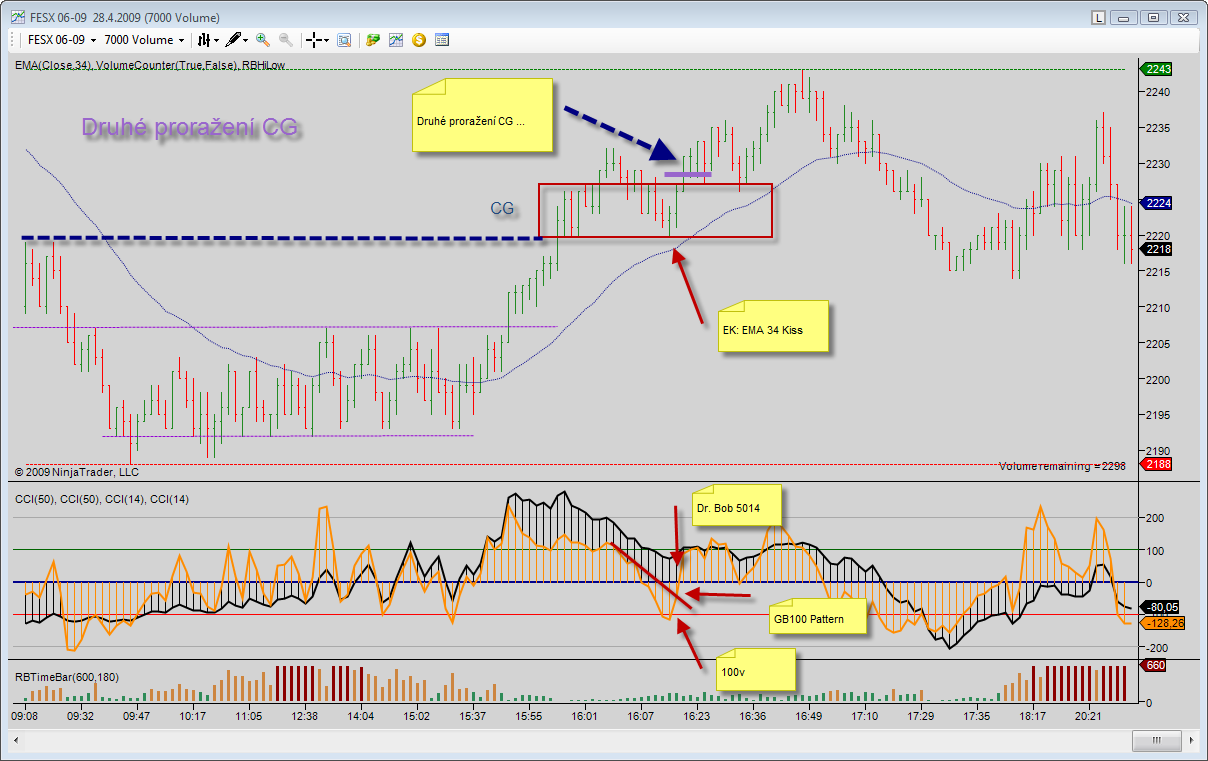 To yax: Dovolim si male filozofovani jak jsem se dostal k Rossovi, neni to az tak uplne neco jineho nez jsi doposavad obchodoval na TF. Zacal jsem od Dr.Boba 5014, pres 100/v (FinWin II) az jsem zatim zkoncil u druheho prorazeni CG (Ross). Je to +- stejna situace na grafu a podobny vstup s tim rozdilem, ze prorazeni mohu obchodovat i na vetsim TF coz se mi osvedcilo, mam mene impulsivnich obchodu (hodne k tomu tu napsal hlavne Gladiator028, jeste musim koukat casteji na vetsi TF a validovat celkovou situaci na trhu...) a zejmena umim dopredu urcit presne misto vstupu i se SL a nemusim trnout zda je korekce uz u konce (jestli to bude 0/v nebo 100/v nebo se to otoci cele, vis o cem mluvim :-). Jakmile se cena vrati do CG tak posadim cekaci prikaz a bud to prorazi nebo se to otoci a pak se nic nedeje, prikaz zrusim. Celou sadu podminek pro vstupy 100/v jsem velice zjednodusil prave na druhe prorazeni CG a soustredim se mnohem vice na celkovou situaci a zejmena napozorovani/naciteni, kdy to jde spravne a nechat to zit a kdy ukoncit na BE! Pokud dojde k otoceni trendu na vetsim TF (10 min.) je formace 123 High/Low a u bodu 2 vznikne CG pak cekam na druhe prorazeni a vstupuji v podobnem okamziku, ktery jsem kdysi popisoval u Gordona, na 150t to bylo to prvni 2v po otoceni trendu a pokud kuknes na RB tak se tam objevi Gordonuv Hammer... Z meho pohledu jsem si celou radu velice profitabilnich vstupu zjednodusil na jednouduchy vstup a dale se uz vstupy zabyvat nechci, protoze je to mnohem vice o jinych vecech ... Kukni na to a uvidis, mozna ti to bude taky vice sedet... R.