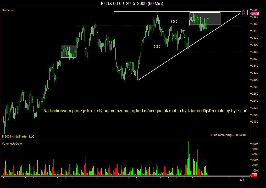 Ahojte, pohlad na trh na 10 min grafe, horná linia CG je skutočne velmi silnou ST z dlhodobého hladiska a čím dlhšie odoláva tým silnejšie bude prerazenie nakolko tam umiestnia čakačky "velký" obchodníci. K prerazeniu môže dôjst kedykolvek bez avíza aj ked sa tvári že to pôjde nejakú chvíľu do strany. Celý trh je o emociach a nad tým , že je Piatok uvažuje vela obchodníkov a zvažuju či iniciovat prerazenie, alebo počkat na posily v Pondelok. Dá sa povedať že slovo Piatok je pre dnešok "fundamentálna" správa .....necháme sa prekvapiť. Aktuálne sa hýbe cena nad CC a to je dôležité.. Gladiator028