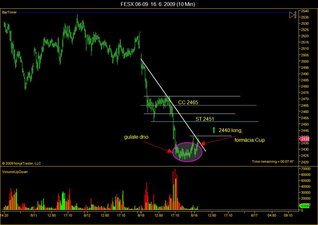 linia 2440 je určitým levelom pre možný odraz do longu, to že tam mám zelenú šipku neznamená okamžitý vstup do longu. Znamená to že pokial prerazí túto hranicu a urobí korekciu ...teda aspoň 5 usečiek a začne sa vracať späť tak vtedy je potvrdený Long , nakolko ho trh uznal lebo sa vracia späť . To znamená, že má na svojej strane záujemcov o nákup v tejto cene. Nikdy sa netreba plašiť za obchodmi, deň je dlhý a príležitosť príde s "krikom" budíček ....do práce.