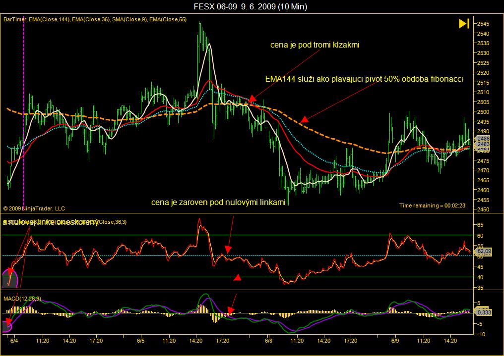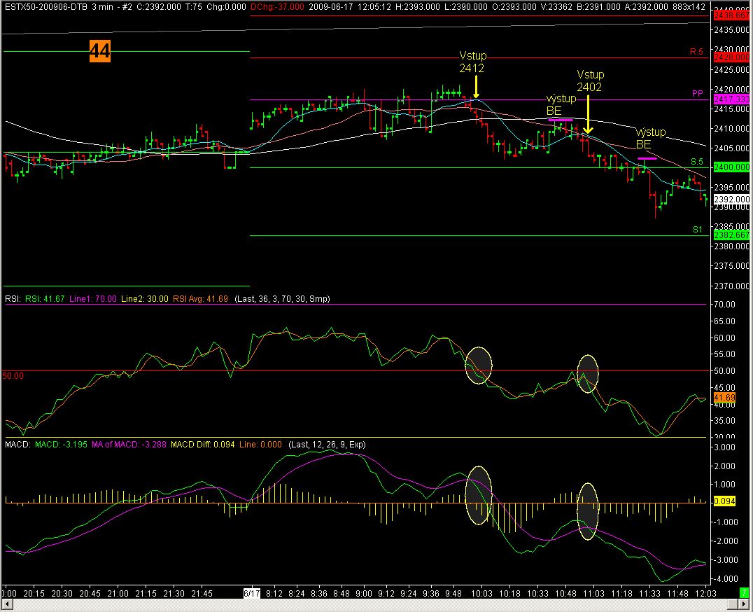 Ahoj Gladiator028, takže pre teba trochu nostalgie a niečo na zavzpomínanie :). Poslednú dobu môžem obchodovať až večer a pravdu povediac na trhoch sa toho moc nedeje, tak som len tak pre zaujímavosť začal testovať tvoj starý systém ktorý si tu prezentoval. Ide o to že nevydržím sedieť bez obchodu dve hodiny v nečinnosti,pár dní po sebe a môj systém mám natestovaný, takže toto mám ako koníčka a niečo na rozptýlenie:). Dnes som mal doobeda trochu času, tak som si ho na sime vyskúšal v reálnom trhu a mal by som k nemu pár dotazov len pre zaujímavosť. Jedná sa o posun na B/E, písal si že si posúval, keď bol tvoj profit vo velkosti SL. V testoch mi to išlo podobne, ale dnes na sime som si všimol, že ak nakupujem za market na close úsečky tak mám slip 1 tik a to práve rozhodlo, že ma cena vyhodila presne na B/E. Ďalšia vec čo ma zaujíma sú výstupy. Písal si že vystupuješ buď na predom stanovenom PT s RRR 1:3, alebo si riadiš vystup podľa toho čo sa deje v trhu. Čo si tým konkrétne myslel? Skúšal si aj výstup pri prekrížení MA v MACD, prípadne na Pivotoch? Inak tento systém je myslím OK a ak niekto ešte nemá vlastý tak si ho môže vyskúšať (tu) (tu), je jednoduchý na pochopenie. Takže tu je screen pre zaujímavosť