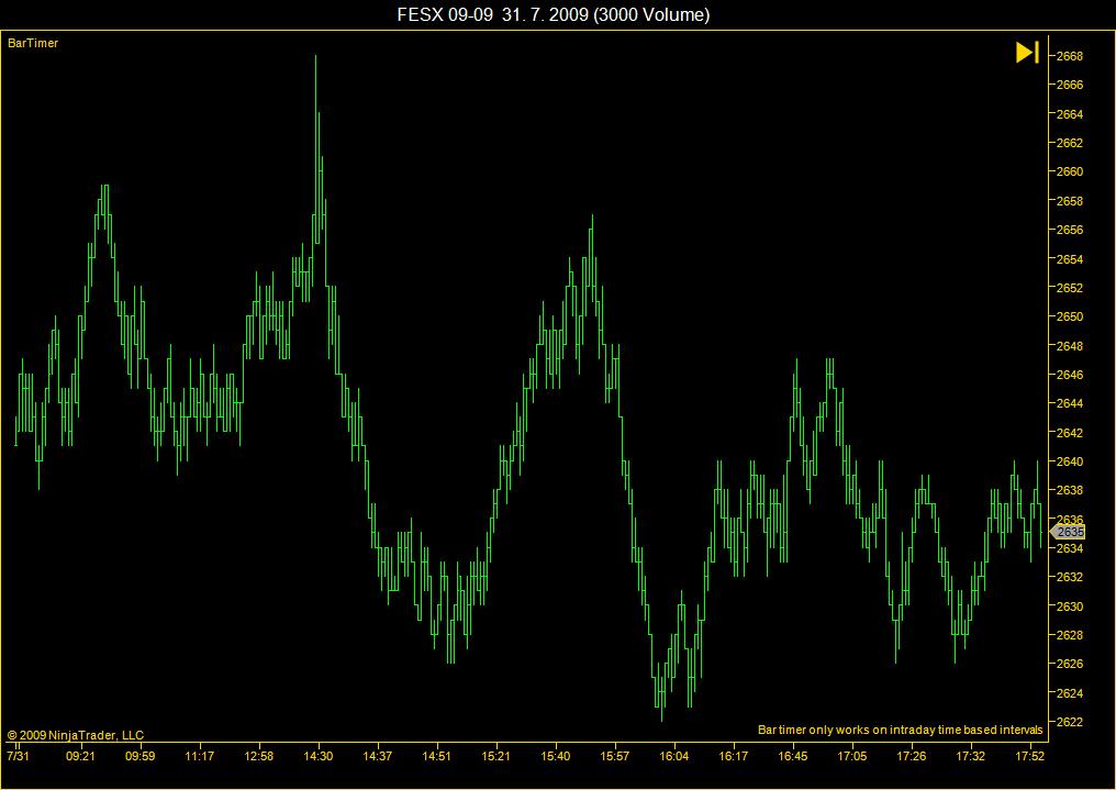 Ahojte, len tak pre zaujimavosť porovnajte si trhy FGBL a FESX s rovnakými parametrami Range a Volume. Ide sítce o rozdielne trhy , ale aj pri zmene hodnôt je jednoznačným favoritom pre túto dobu FGBL. Je jasne čitatelný , má pekné svingy , oproti tomu FESX je rozsypaný a ťažko sa v ňom orientuje. Na jednom FESX som dvihol aj volume no nepomohlo to. Takže súčasný europsky favorit je FGBL teda okrem FDAX-u. Gladiator028