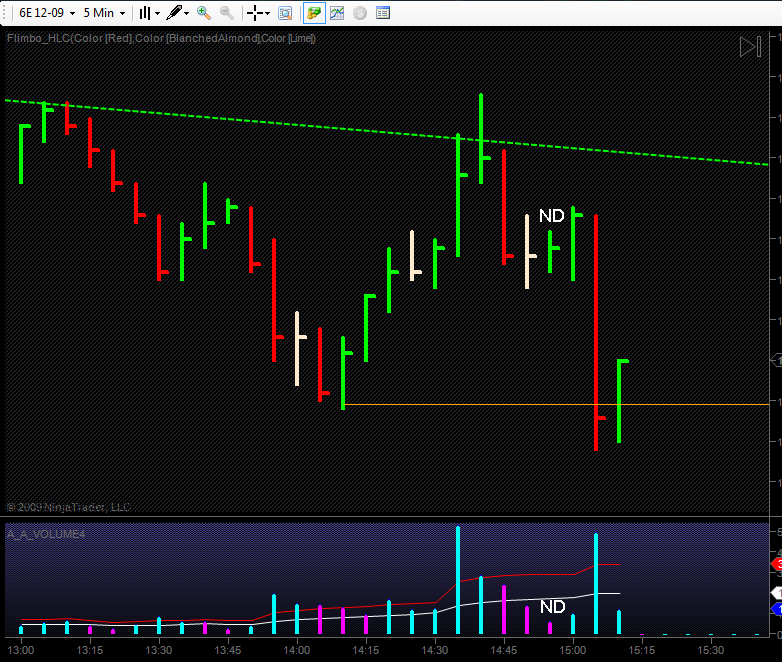 Obchod po Newsoch. Celkom idealny No Demand ibaze tie dva Close pred nim boli prilis pri sebe, to ma odradilo od obchodu kazdopadne koniec koncov by stoho bol pekny obchod. Niekedy mozno nie je dobre cakat na Idealny setup. treba si uvedomit ze ten setup nastal v oblasti kde vcera bolo vysoke volume. Vadsinou sa cena knemu vrati a vtej oblasti treba hladat obchody na stranu short. v tomto pripade bolo idealne aj to ze bol NEWS.