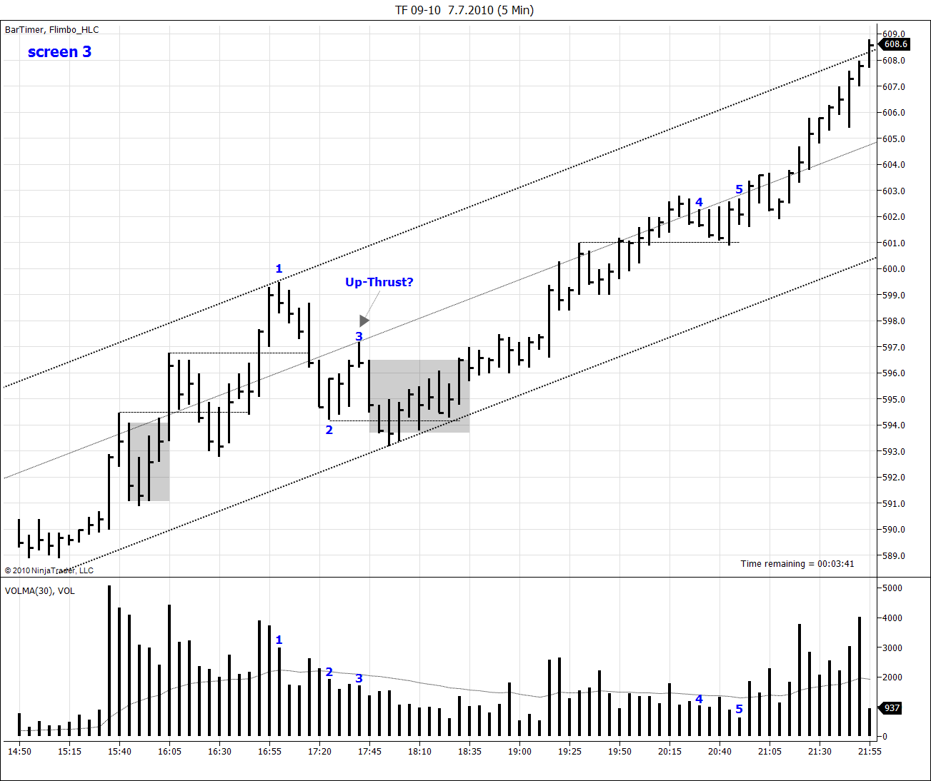 Screen 3: 3ka - moze byt Hidden Uptrust trebalo by pozret mensi tf ale myslim ze ked mas uz tento 5min co je dost malicky tak je to skor Short Covering pretoze na minor climax to nema patricne volume.