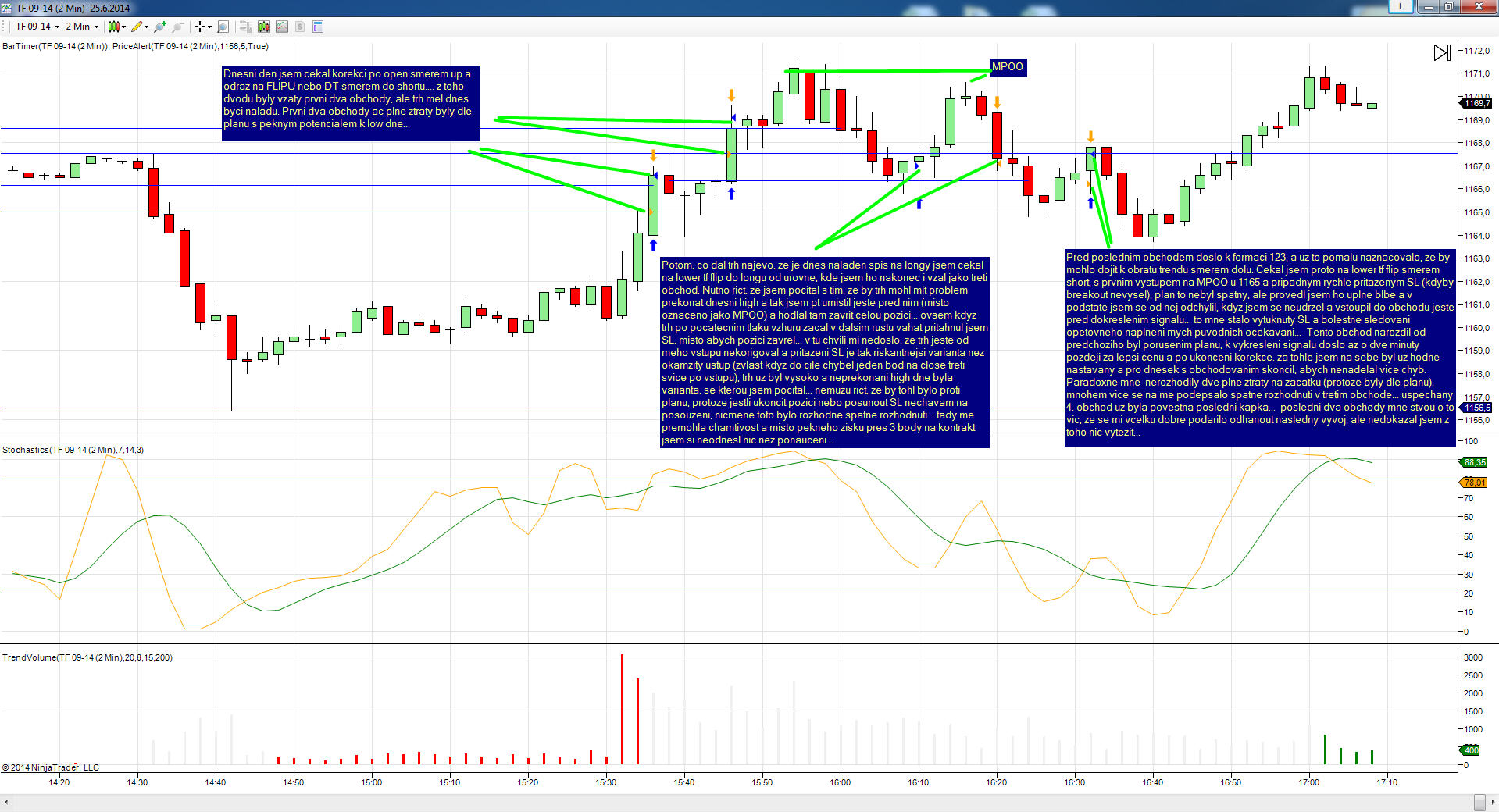 to cipinek: to, ze si reknu v jake je trh aktualne strukture prece neznamena, ze se to behem seance nezmeni... nekolikrat tu byl i screenshot, kde jsem zmenu toho pohledu i zapsal... to, ze vidim nejakou strukturu trhu taky neznamena, ze budu brat signaly proti planu... naopak... znamena to, ze nektere signaly podle planu nevezmu, protoze jsou podle mne v danem okamziku riskantni, to se ale muze zmenit behem par minut se zmenou struktury ci kontextu... cteni struktury ci kontextu trhu z vyssiho TF pro mne ma tedy jen filtracni ucinek (redukci nekterych obchodu) nikoliv ucinek opacny, coz by bylo pridavani obchodu a hadani se s trhem jak tu naznacujes... prvni tri vstupy ve stredu jsem udelal podle planu a s tim ten treti byl i po zmene struktury na vyssim tf, coz zmenilo i muj pohled na to brat v danem dnu longy... nasledne se struktura opet naklonila spise shortum, tak jsem planoval jeste 4. obchod, ktery jsem ale provedl naprosto spatne a rozhodne ne podle planu jeste pred vykreslenim signalu... ty prvni dva shorty bych bral i pred mesicem, kdy jsem kontext nezohlednoval... co mne srazi jsou chyby proti planu, ktere mne shodne staly v kvetnu i cervnu uz minimalne 1000 USD na kontrakt, to jsou hlavni vlci zerouci me "stadecko ovecek" nastesti pro me se "stadecko" v kvetnu mnozilo rychleji nez ho vlci zrali a ted v cervnu aspon "stiha nahradit padle kusy" :D