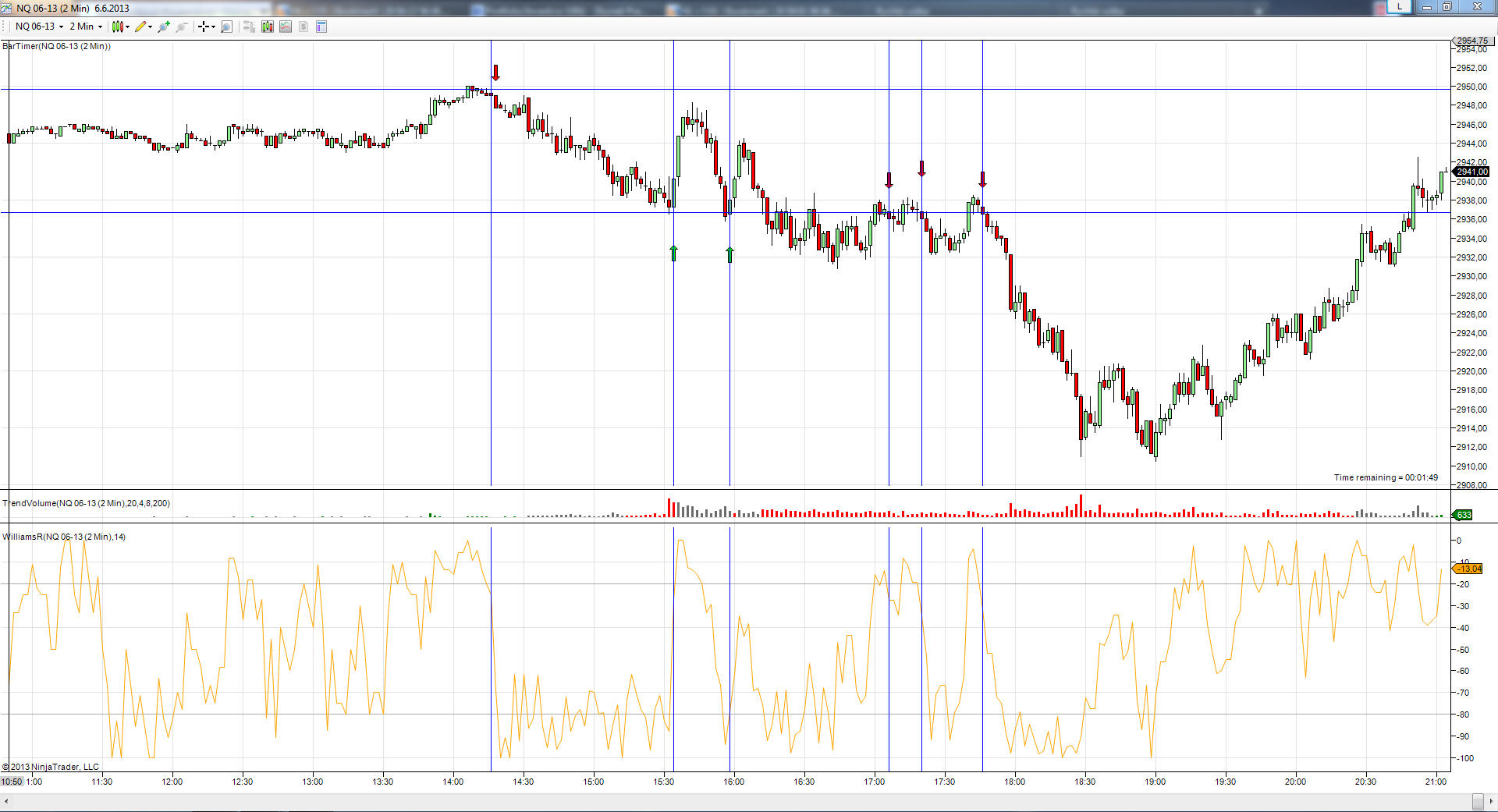 to stranger: mel jsem dojem, ze jsi starsi :) me je 27, na tomhle foru si tak nejak vykame s icm, tak jsem v hlave neprepnul, ze uz jsme si tykali vedle :) ohledne tech S/R mas pravdu, jen me nenapadlo urcit si takto specificky mechanicka pravidla pro jejich zakreslovani... to zni zajimave a rozhodne to stoji za blizsi prozkoumani... castecne i v tom byl zakopany pes... muj druhy problem tkvel v technice vstupu u S/R urovni, tak nejak jsem mel v hlave zafixovano, ze kdyz uz diskrecne posuzuju S/R (tehdy spis pocitove nez mechanicky) mel bych diskrecne posuzovat i techniku vstupu, a to byl ohromny pruser potom... bez poradnych a pevnych pravidel jsem byl jak utrzeny ze retezu :D (td), proto jsem toho nechal a zacal hledat poradna pevna pravidla.. za S/R jsem si vytycil HOD a LOD a techniky vstupu, rizeni pozice i vystupy jsou striktne vymezeny a postupne na nich pracuji do dnes... po Tvem prispevku, jsem se mrknul na dnesni graf NQ (zkousim si na nem zakreslovat S/R pred seanci a nasledne sleduju, jak se u nich trh chova - S/R tam mam jeste zaresleny jako cary, coz si myslim je ta horsi varianta) a napadla me hned celkem jednoducha technika vstupu u techto urovni... vezmu-li napr. indikator Williams R% a jeho navrat z extremni do bezne oblasti jako signal ke vstupu pokazde, kdyz se trh odrazi od nejake S/R vyjedou mi nasledujici mista vstupu (viz nize)... je pravda, ze s tim uz by se neco delat dalo a mohl by to byt pekny zacatek dlouheho studia :D (tu) ve vsech sesti dnesnich pripadech by klasicky SL pro NQ 3 body stacil a ve vsech dnesnich pripadech by si trh od mista vstupu dosel alespon pro dvojnasobek risku (tozn. min 6 bodu)... predpokladam, ze to jsi mel na mysli tim dnesnim dlouhym prispevkem (pokud ne, oprav mne prosim), nemyslim ted techniku vstupu, ale prave to pouzivani techniky vstupu jen u tech S/R urovni... samotnou techniku vstupu uz clovek pri trose snahy nejakou vymysli a vypiluje... diky ti za ten prispevek, mechanicka pravidla pro S/R urovne jsou presne to, co jsem potreboval, abych v system zalozeny na S/R urovnich mohl mit nejakou duveru v live... zvlastni, ze me to nenapadlo... a to se tim zabyvam uz xx mesicu :D ted uz "jen" mechanicka pravidla stanovit a otestovat :)