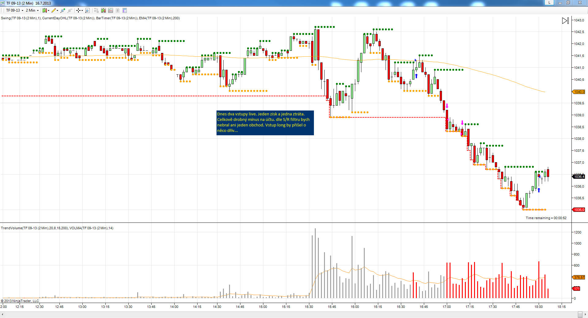 to sublo: konecne jsem doma, a na grafu muzu ukazat, jak jsem to myslel... z vyssiho 30 min tf jsem si zakreslil S/R urovne metodou spojovani swingu... nasledne jsem prepnul na 1 min graf pro jemnejsi casovani vstupu a vylezl mi z toho jeden jediny vstup, ktery je na screenshotu... tvuj pohled na trh je jeste mnohem vic nad veci... tak nejak komplexnejsi... jak se ti s tm dari?