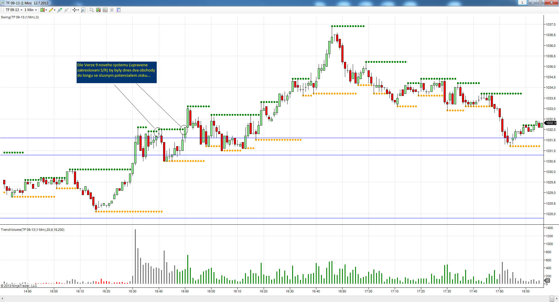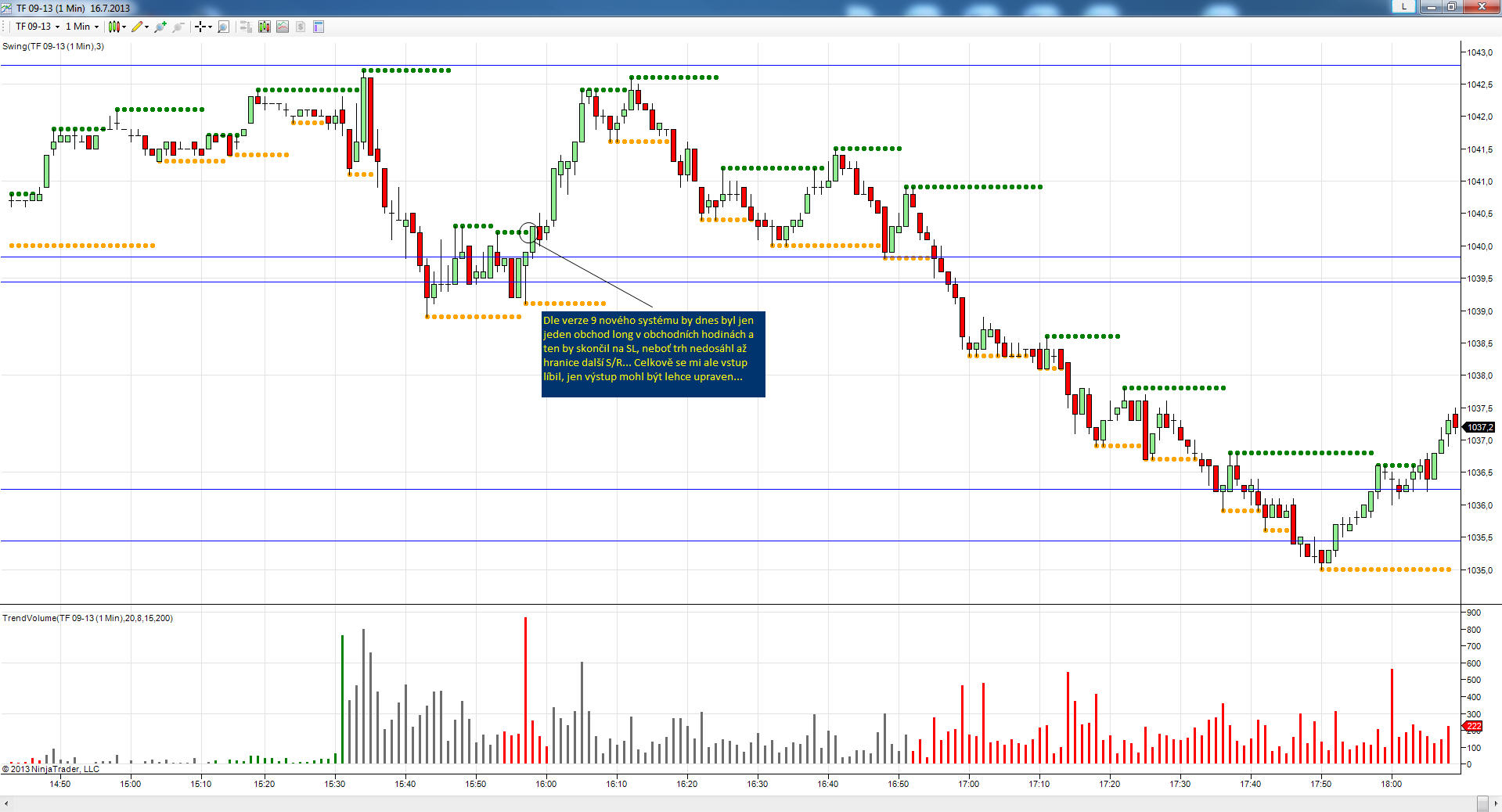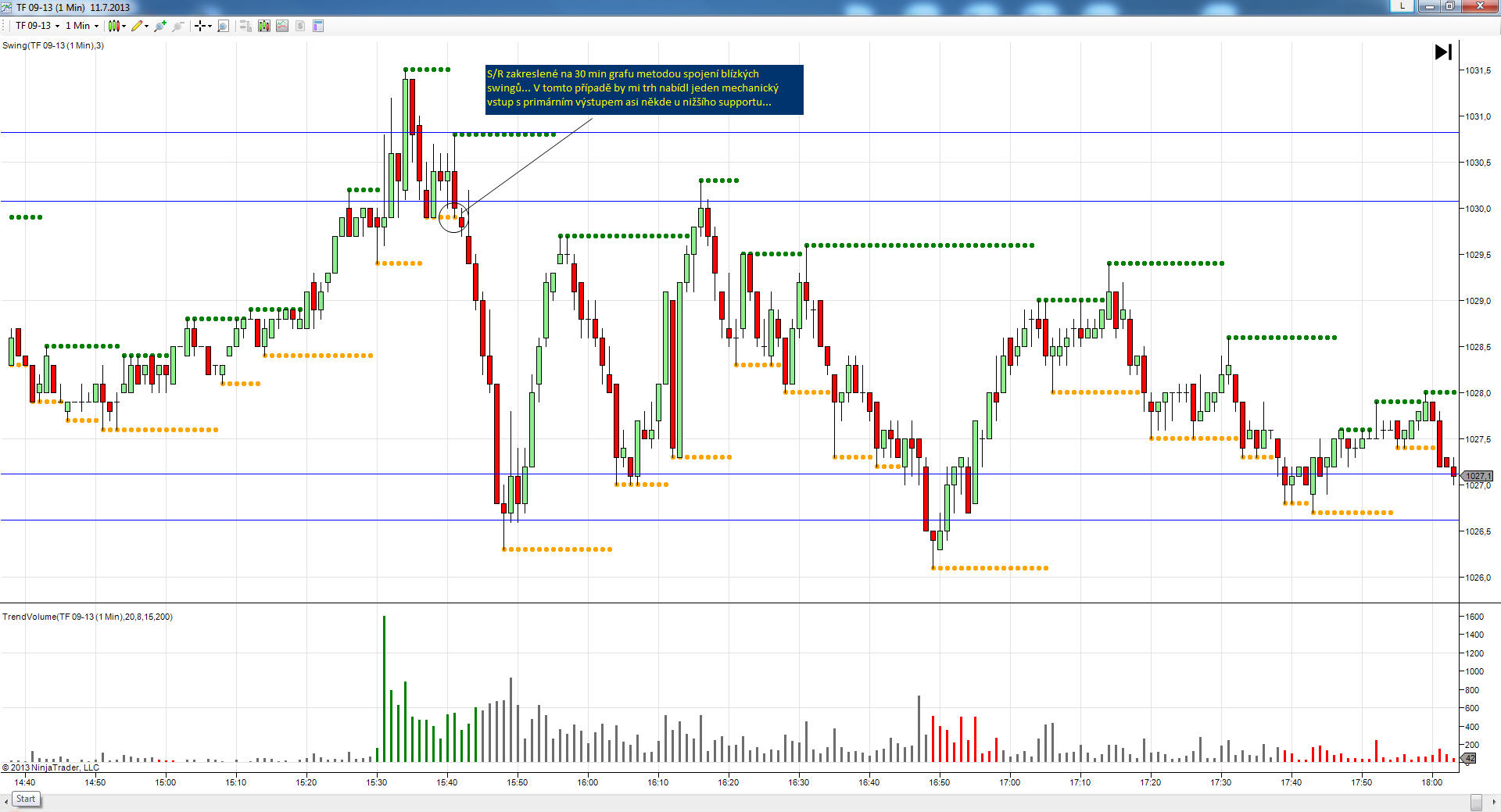 nevim, jak presne myslis: "... a mas pravdu, ze kdybych prepnul pri zakreslovani S/R z 240min na 60 min tf vic a lepe bych videl tu obchodni prilezitost u ceny 1030 tam to bylo vazne na short zrale" ... ja jsem spis posuzoval ten dlouhej UP trend, kterej zacal myslim nekde na 945 a nezdrave se ritil vys a vys bez zadne velke korekce+vcerejsi velkej GAP+TR v PMKT +uz pred FOMC to byl dlouhej UP trend a reakce na FOMC minutes se odehraly pozde v noci a v PMKT, tudiz bych nevsazel nic na to, ze trh poroste po Open dal .... to jsou indicie, ktery me rikaj pozor s dalsima longama (Zadnej strom neroste do nebe.)