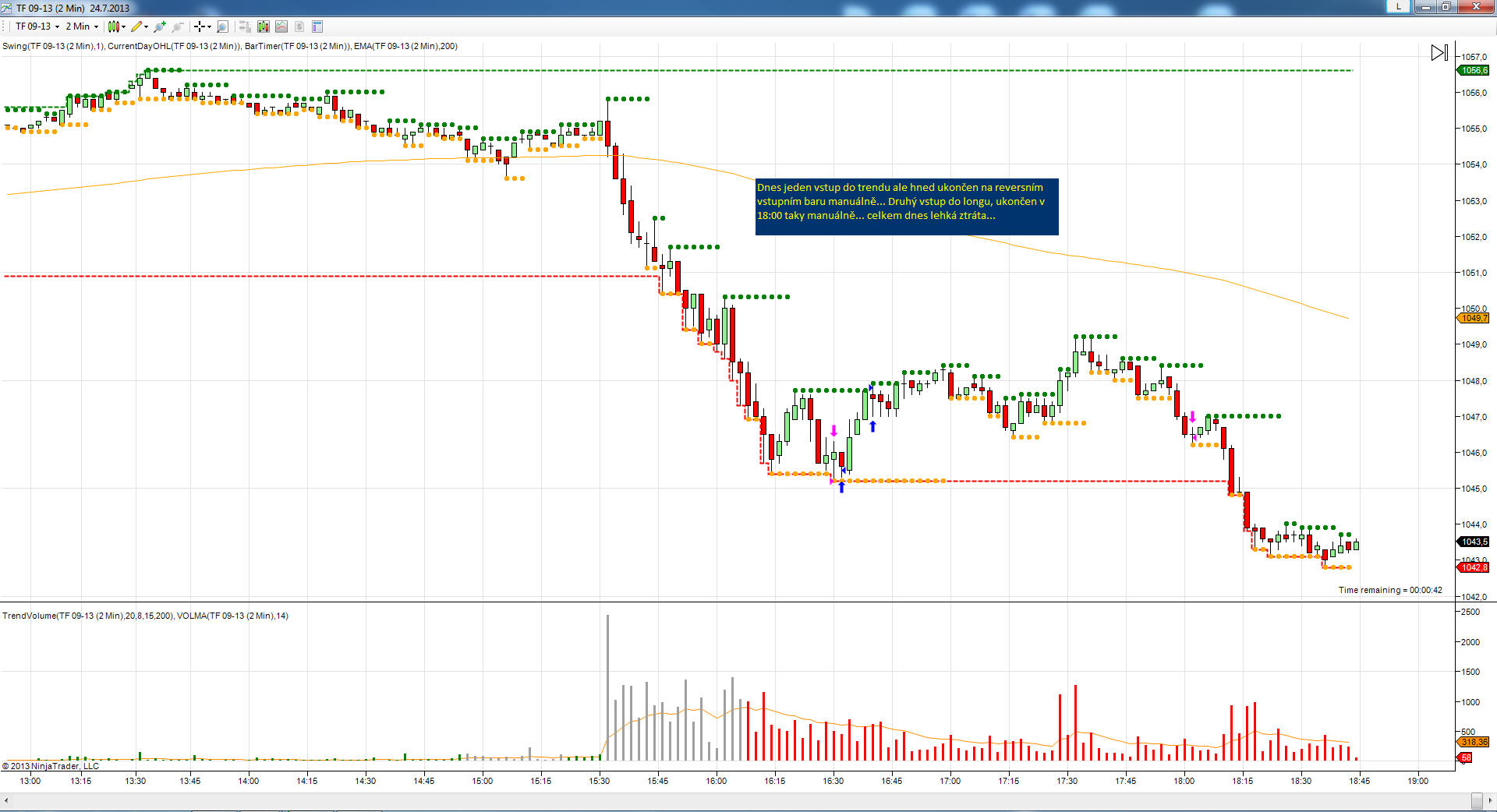 Asi nema cenu komentovat kazdej screen ale udelej si svuj domaci ukol: koukni se jakym zpusobem trhy trenduji, kde cekat korekce, jake muze byt prumerne denni rozpeti a jak se meni v case, apod. Pokud chces obchodovat cistou PA, tak to je prave zaklad bez kteryho se tezko obejdes.