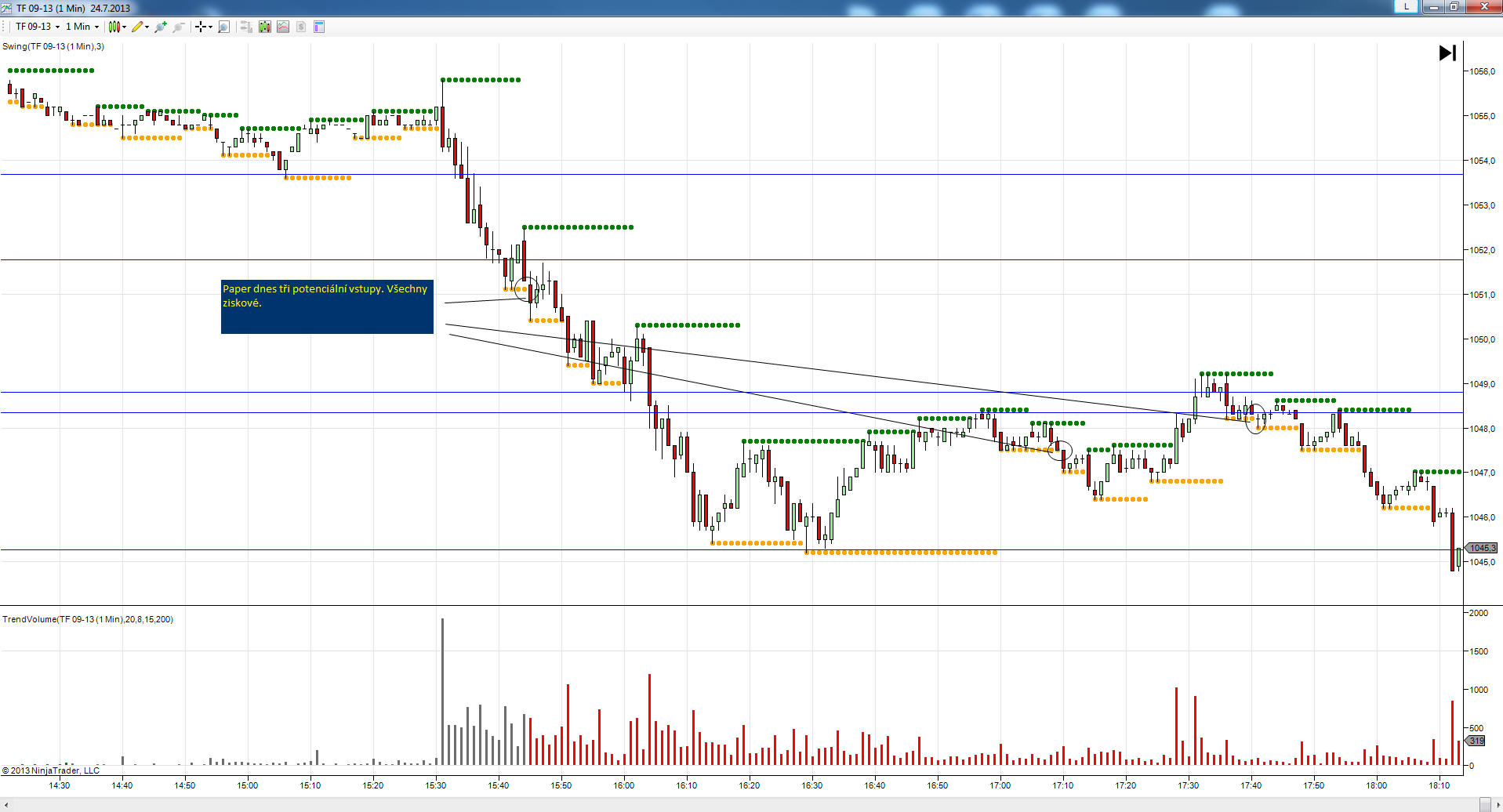 jeste jednou opakuju, i kdyz jedu live stale to same, uz pres mesic intezivne studuju, backtestuju a papertraduju S/R urovne a chovani trhu u nich... vysledky papertradingu sem davam vedle live obchodu (live system neprestanu obchodovat dokud nebude hotovy novy system, protoze nevim, kdy bude hotovy novy system, ale doufam ze do zari 2013)... jsem rad za komentare, ale jeste radsi bych byl, kdyby se vztahovaly spis k tomu papertradingu, ktery sem davam... vim, ze aktualni live system (i kdyz vydelava) ma vyrazne slabiny, a to je duvod, proc se snazim zaradit S/R urovne... byl bych strasne rad, kdyby jste se mi tu vyjadrovali i k tem paper obchodum, protoze tam je system teprve ve vyvoji a muze mi to strasne pomoct vyhnout se nekterym pastim :)
