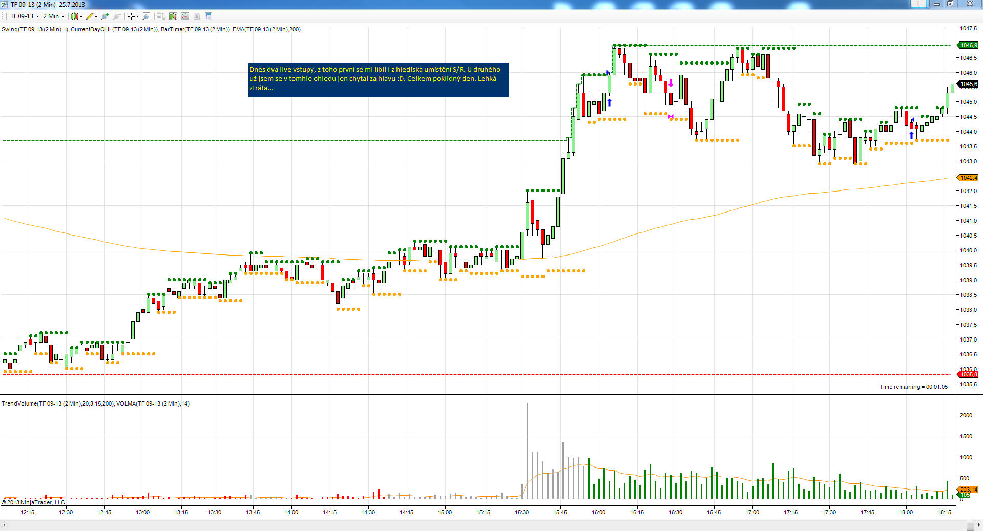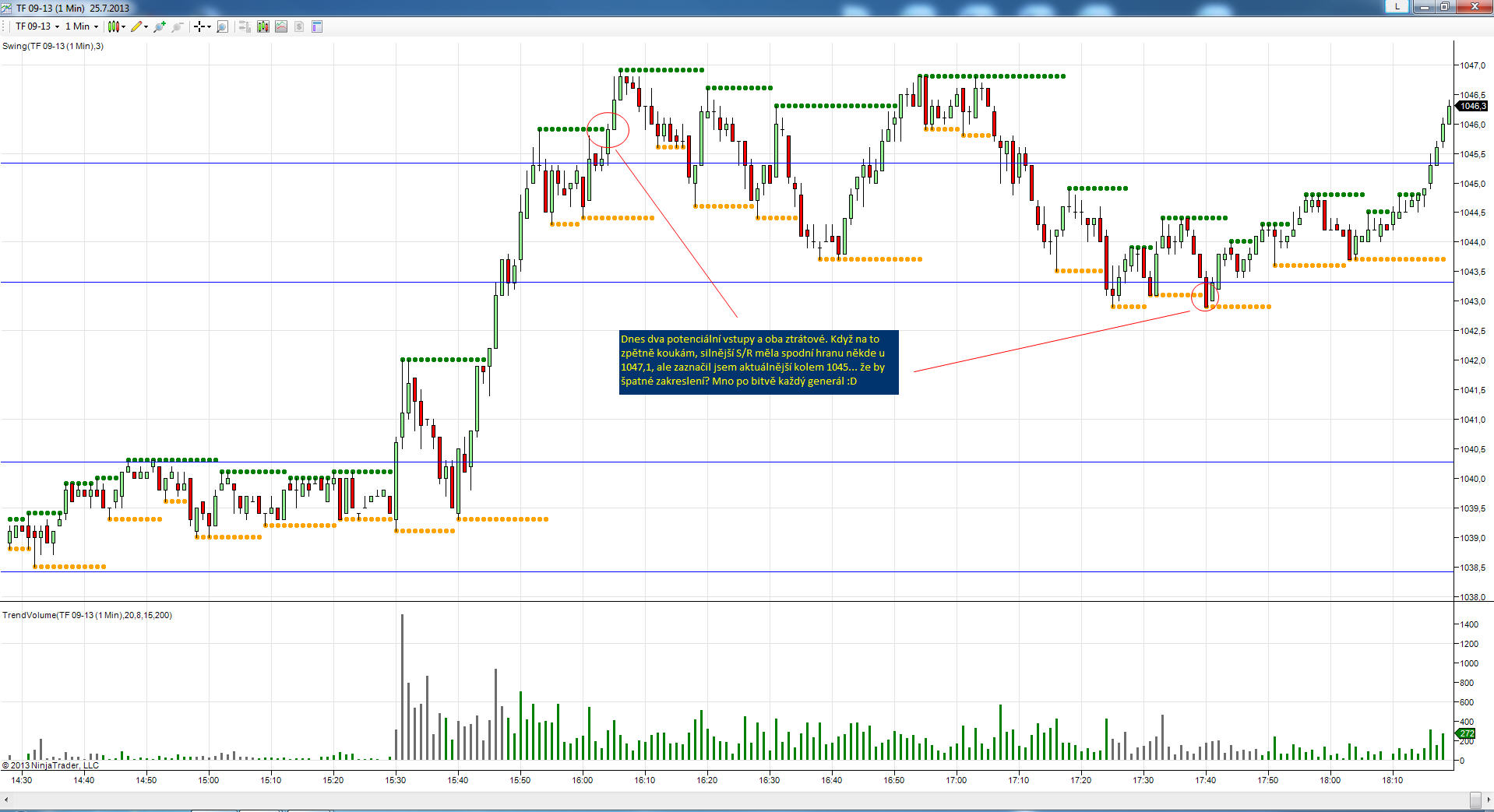 V PMKT byl TR, kterej byl v RR pozici ke vcerejsimu high (YH). Dalo se predpokladat, ze cena po Open klesne na YH/ YC (RR) a tam budu hledat obchody do longu abych mel do dalsi SR (1047) misto. Dalsi longy jsem planoval az v RR pozici po jasnem prekonani.