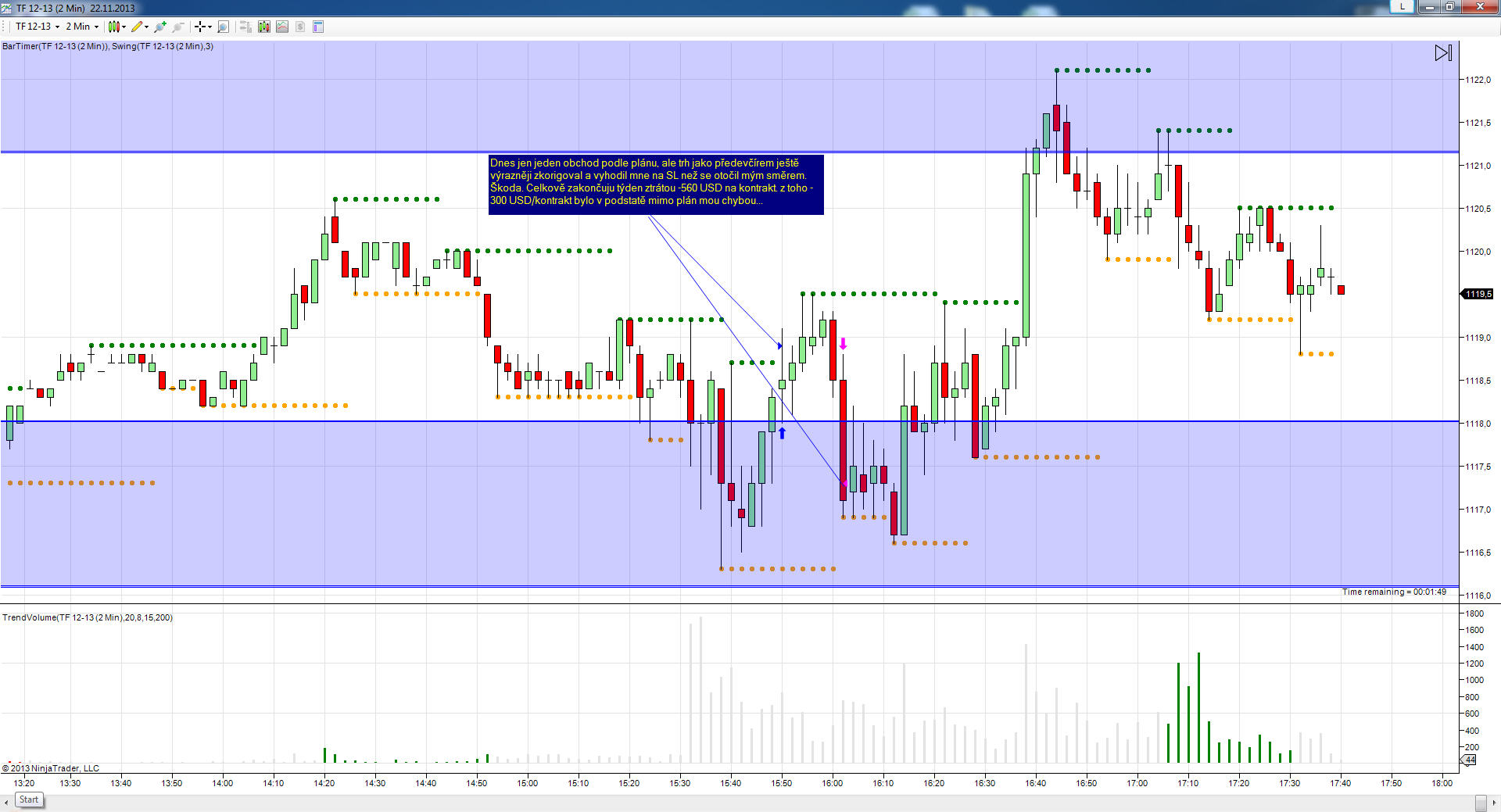 -560 USD/kontrakt je vysledek jenom za tento tyden, za listopad jsem porad nejakych 500USD/kontrakt v plusu... od zari pak nejakych 2000 USD/kontrakt v plusu... tento tyden je druhy ztratovy tyden od zari (live spusteni tohoto systemu)... clovek se musi smirit s tim, ze nebude ziskovy kazdy mesic, nedejboze kazdy tyden nebo dokonce den... to uz je pro vyssi ligu :D