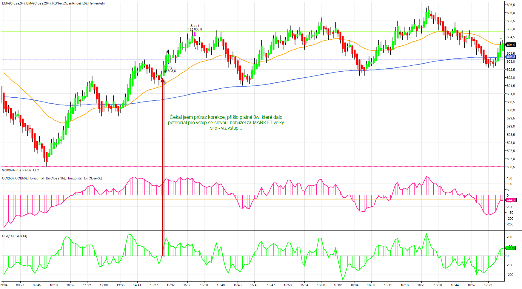 Je to tak, trh byl dost nervozní. Přesto jsem vzal vstup v 8:44 na ES na 1107. Výstup jsem dal nízký , na jistotu 2,5b. Dobře jsem udělal, protože pak se trh vydal opačným směrem.