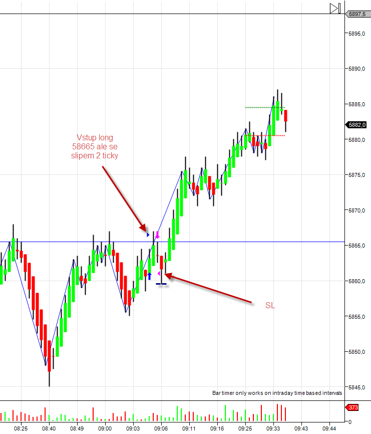 Mě dnes vyšel vstup v 9:03 do longu. SL 9 bodů. Takže PT 27b byl uzavřen v 10:15. Pak byl short se vstupem 10:44. SL 4,5b. Výstup 4,5b v 10:48. Druhý obchod je s malým PT jelikož trhy již zpomalují a jedu na jistotu.