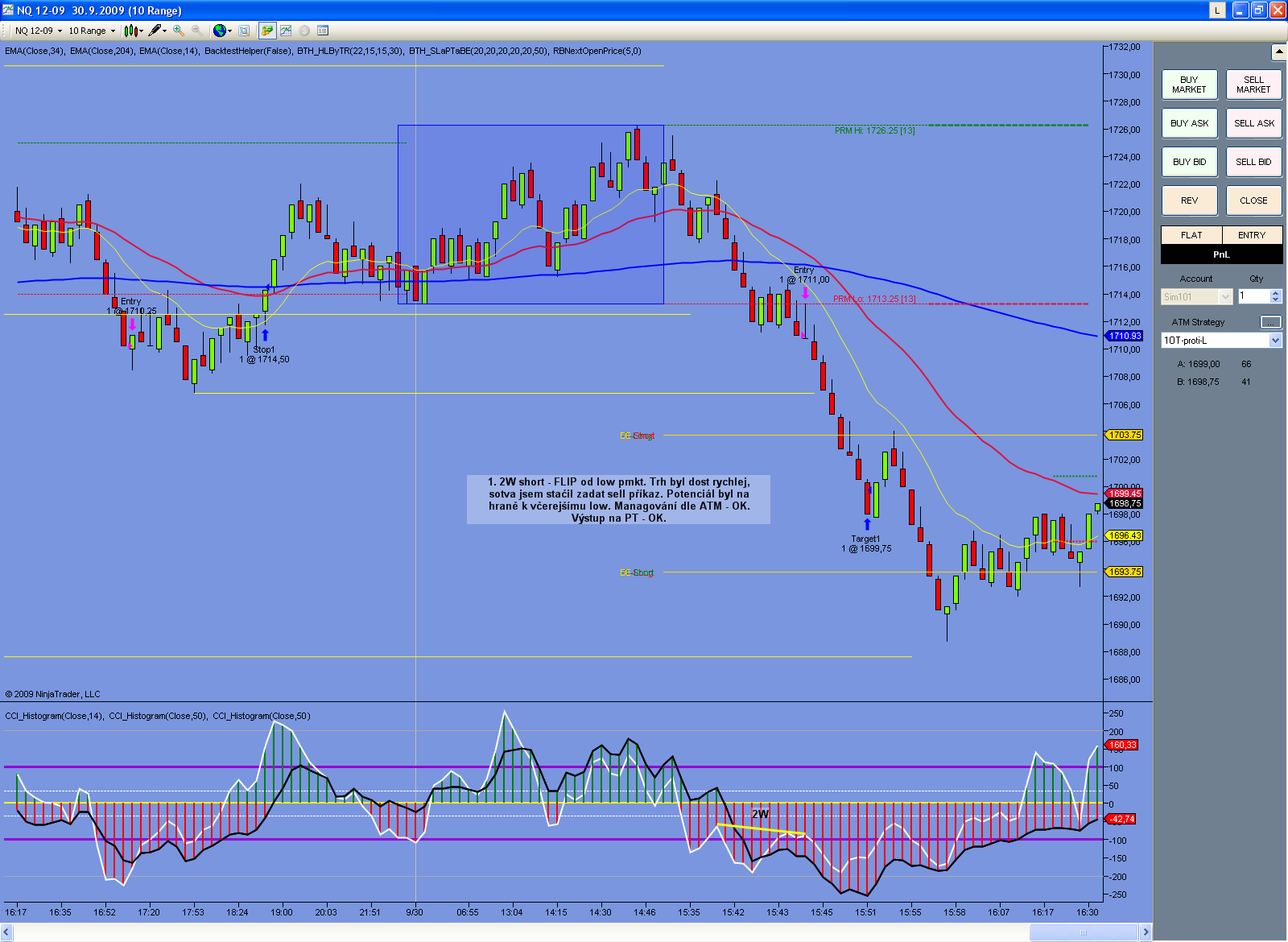 ihned po open jsem šel agresivně do shortu - měl jsem několik jasných indicií (shortový PA signál, klokaní ocas v premarketu), akorát jsem pak v congestions neudržel nervy a uzavřel na BE :S