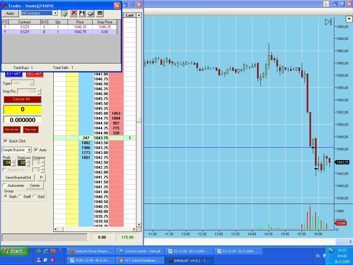 Zdravim, tak dnes na TF 1. korekce ztratova, nestacil SL o 2 ticky, ale to je zivot, vyjde to jindy. Jak psal Pavel, dnes pravdepodobne volatilni den, takze zitra jenom paper. Jinak dnes spokojenost, muj koncici system na TF mi nadelil 5.2 bodu Lada
