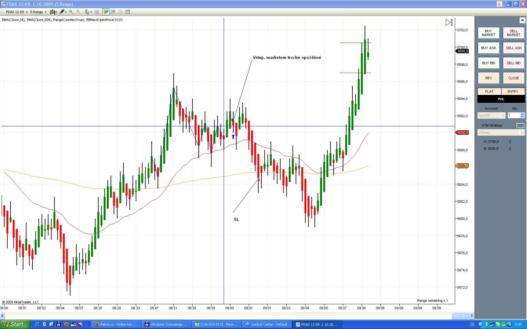 Ahoj pánové Tak dnes DAX ještě paper a skončilo to SL. Hned po open jsem šel marketem long viz. graf. No hlavně se držet systému. Jsem zvedavej jak vstoupili ostatní. Ať se daří Ahoj Miloš
