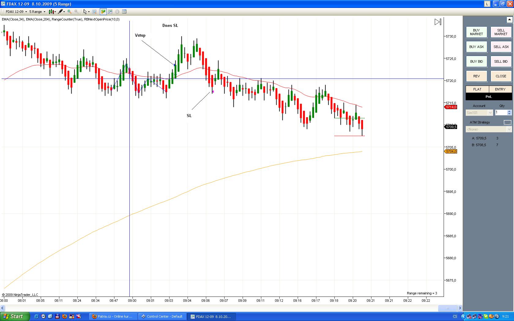 Ahoj Dneska na DAXu SL. Po pravdě jsem po výsledkách Alkoi podvědomě očekával že do toho obchodníci prásknou. To se mi také vyplnilo tak jsem šel long. Dlouho to ale nevydrželo. Trh již na tuto zprávu reagoval dávno před tím a teď to vypadá že hledá směr. Dnes jsem z toho neměl dobrej pocit, lepší asi bylo dnes neobchodovat. Ať se daří Ahoj Miloš