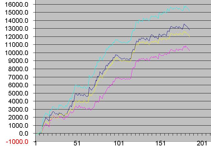 Este k tomu chyba popis. Prvy obrazok je equity, kedy beriem obchody, ktorych vstupne usecky su medzi EMA34 a EMA204. Druhy obrazok je equity, kedy vsetky vstupy su brane ked je cena bud nad alebo pod EMA34+EMA204.