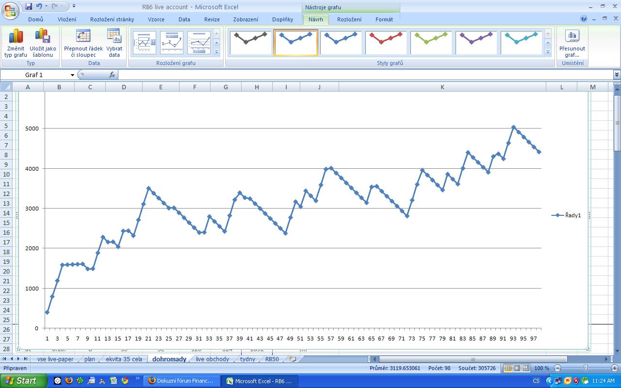 Zdravim, nevim proc se vzdycky zacne resit nejaky clovek co zacal delat na demo rope vydelal x tisic dolaru a pak to neslo a ted jsou debaty o tom jak nema delat to co dela.. to stejne kazdy sam zjisti a nemusi se to porad resit... K tem mechanickym systemum... ja jsem zacal od rijna a system jede docela v klidu porad relativne "stabilne" nahoru i kdyz ty vykyvy jsou.. na livu to je trochu jinak ale to jsem popisoval uz ve vlakne k aktualnimu deni.. Zatim jedu jeden vstup i kdyz bych opravdu chtel jet dva ale nemam na to kapital... prikladam tady ekvitu ciste mechanickeho systemu dva vstupy denne od 22.9.09 co jedu live 1.vstup a paper 2.vstup.. .takze i ted ve "spatnem" obdobi pro mechaniku to porad jeste vydelava, Do budoucna pojedu porad dal a nechci nic menit dokud to nebude opravdu nutne... Moje vstupy nejsou na prolomeni 1. korekce o te si myslim spis to ze je az moc dobre videt a vypada moc jednodusse na zobchodovani a proto je tam spousta falesnych prurazu atd je potreba do toho jeste neco privymyslet ale sam nevim co a snazim se na to prichazet.... Jinak na zacatek bych mechanicky system naprosto doporucil vsem traderum nehledte na vysledky hlavni co vas musi zajimat udelat si kazdy den ten jeden obchod presne podle planu a zapsat a divat se na trh jak se chova ale uz nevstupovat... takhle jet aspon nekolik mesicu a na zaklade toho pak sestavovat lepsi systemy... a jestli vas ty prvni 3 mesice mechaniky nahodou sroluji o 2000 usd tak to nereste berte to jako vyborne skolne za dodrzeny plan a ne ze jsem projel penize...