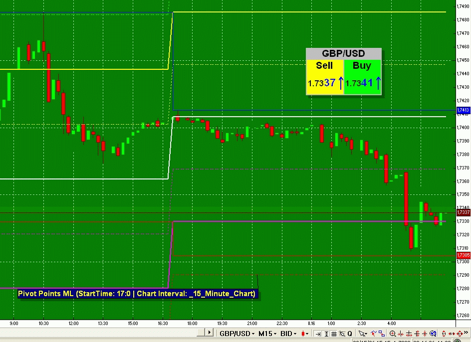 To Volf 1. PP ve VT ukazuje celkem OK a vlastně se neliší od tvých výpočtů (max. tak +/- 3 pips - viz graf). Někdy jsou ML úrovně prezentovány jako hranice S a R, někdo uvádí v komentářích S a R bez ML úrovní. Viz tabulka z jednoho serveru, který vlastně používá ML úrovní jako S/R (a tak to uvádí i dost koment. serverů). Ano, já komentoval hranice ML, jako S/R, dle toho serveru, i když je to vlastně dle klasické poučky o PP S/R a algoritmu výpočtu, v koment. jako hranice S2 a R2. GBP/USD 16.2.2006 Resistance 3 1,7575 Resistance 2 1,7485 Resistance 1 1,7445 Support 1 1,7375 Support 2 1,7330 Support 3 1,7280 2. Já nemám žádnou šablonu na vstupy po datech, posoudím dle FA jak jsou data důležitá, zda se nemohou vyrušit jiným očekáváním a jaká je celková situace na trhu, včetně trendu a jdu do toho po nějaké době ručně. Pro určení dalšího možného směru vývoje používám ZLS (v periodě - smoothing 20) a pak krátkodobý kumulovaný indikátor - MA 5S,MA 10S, RSI, MACD s ADX filtrem na 10 min. grafu.. Ale to jen pro vývoj po datech !! (i když by se to dalo asi využít pro obchody na krátkých grafech 5-10 min.). V období, když se nic neděje, jsem na 15-30 min.grafu podle své klasiky. SID