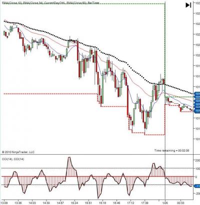Zdravím vikis23 hodinky su v ľavo hore ako je account info, alebo si nastav graf napr : /TF a tam uvidíš kolko je to oneskorené, ja mám real učet tak to mam ok. Túto metódu pozorujem odkedy vyšiel tanto článok . Obchodujem YM na deme. Zatial som si vypozoroval len trendujuce trhy aobchodovanie do trendu . Ak sa vačšina akcii obchoduje hore a len pár dole. Obraty v trhu sa mi nepodarilo nejako vypozorovať. Ale bude to chciet asi viac času. ............................................................. Pri tom trendovom obchodovaní tiež uvažujem že namiesto TOS použijem len jednoduchú kombináciu priemerov. Pretože napríklad na tomto screene sa cca 20 akcii obchodovalo na long a 10 na short a index pekne trendoval dole. Ale je to otázka ešte papertradingu a backtestov.