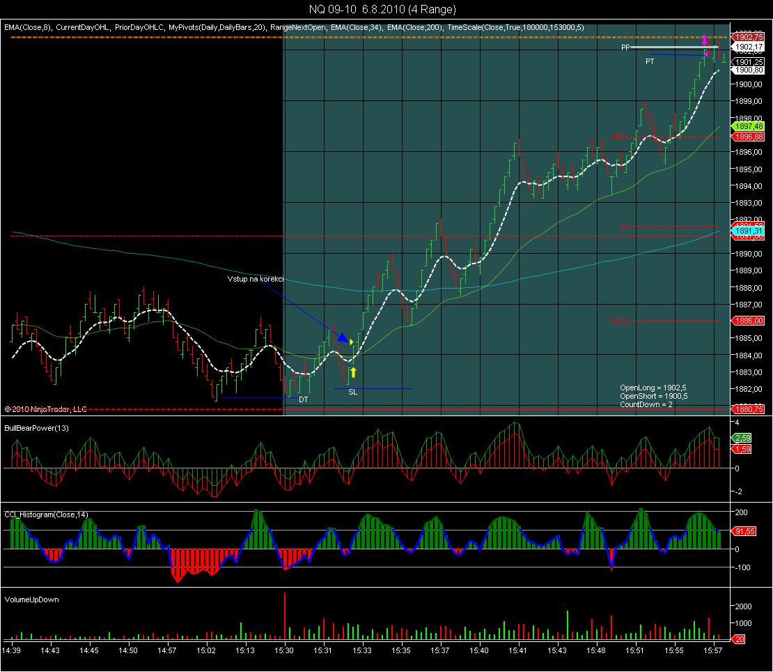 Byl jsem si jistý :) že bude pohyb do shortu, v podstatě by mi stačilo 20 ticků, ale počítal jsem že pohyb bude silnější, proto jsem odstranil PT a posouval SL.