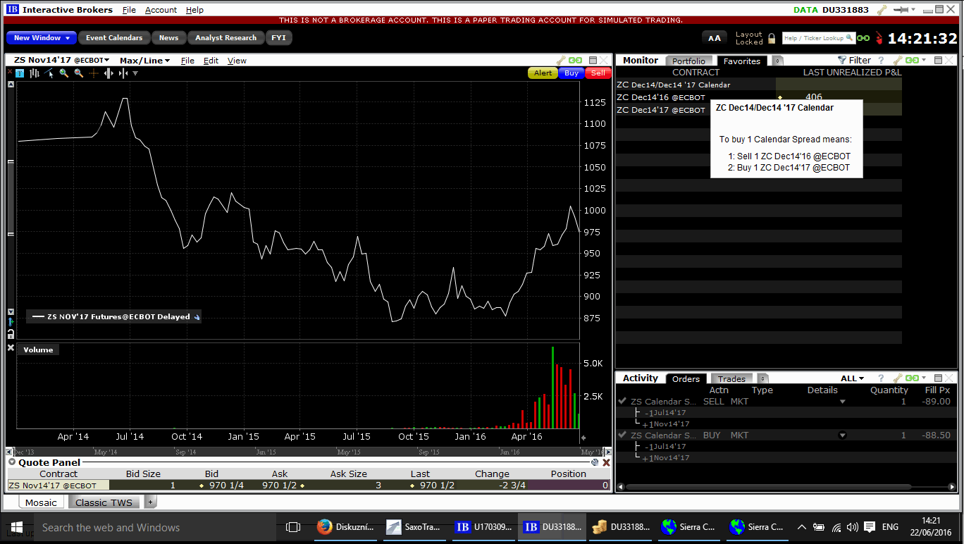 Gajo ještě jednou mi poraď, chtěl jsem zadat v simulaci ZSQ16- ZSU16 a po zadání v Mosaic se to nechce spárovat, buď to píše že to mám zadávat jinak (You can create a futures calendar spread quickly using the symbols separated by a dash. For example CLU5- CLV5 will create a crude Sep15/Oct15) nebo to píše že jsou chybné měsíce a combo nejde vytvořit. Nevíš co s tím a kde by mohla být chyba?? Díky Rolly