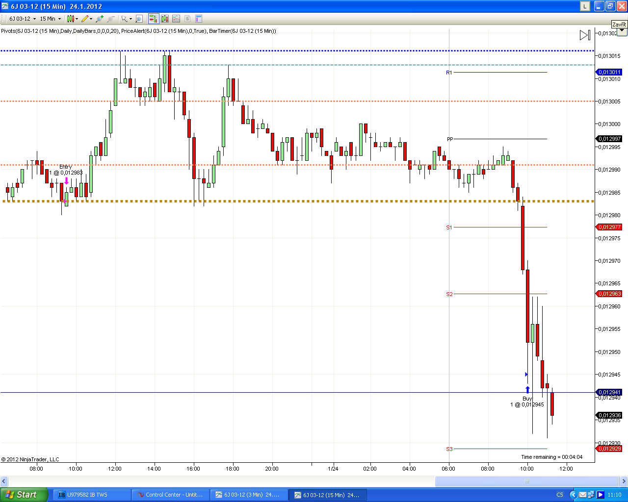 po delší době jsem se zúčastnil sezónního obchodu. Včera jsem prodal jeden kontrakt japonského jenu, dle MRCi je sezona až do 21.2. Včerejší vstup nebyl nijak úžasný, spíš byl předčasný. Nicméně můj SL nebyl naštěstí zasažen a přestože jsem byl celý včerejšek ve ztrátě, dnes v mé nepřítomnosti mě vyhodil na přitaženém PT. Předčasný výstup mně trochu mrzí, ale +470 dolarů je lepší než možná ztráta.